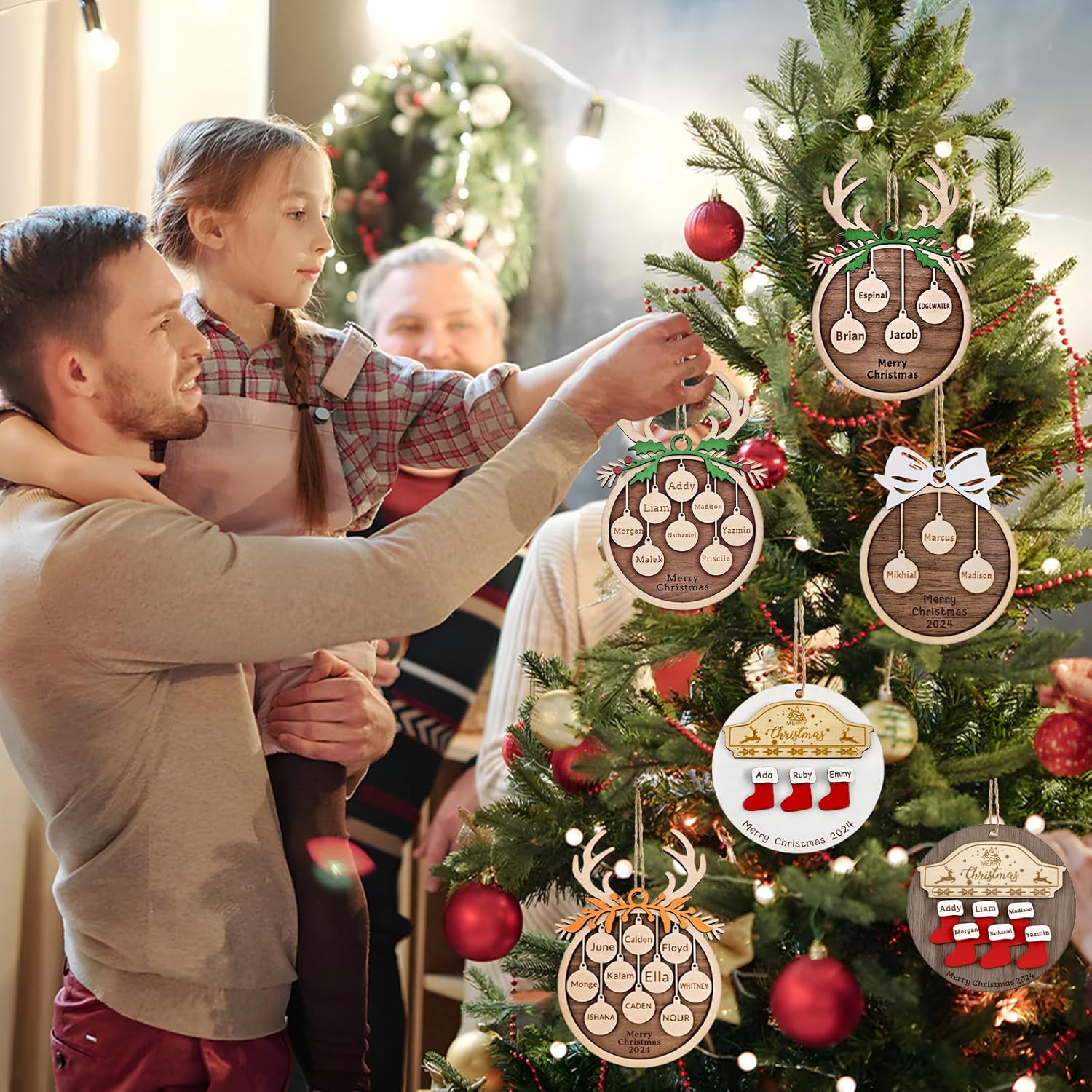 Personalized Christmas Ornaments 2025 with Family Names Custom Wooden Ornaments for Christmas Tree Personalized Christmas Ornament Gifts (1-10 Names)