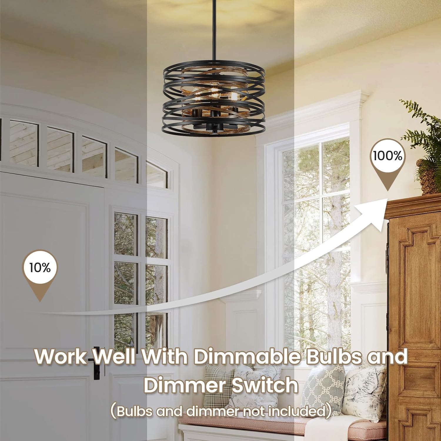 - 【Durable Quality & Guaranteed Satisfaction】Constructed from high-quality metal with a durable wood-and-black finish, the entryway light fixture is designed to resist fading, rusting, and corrosion, ensuring years of reliable use. We offer a full 12-month service. If your hanging light fixture has any defects or stops working within 1 year, we will troubleshoot or send a new light to you.