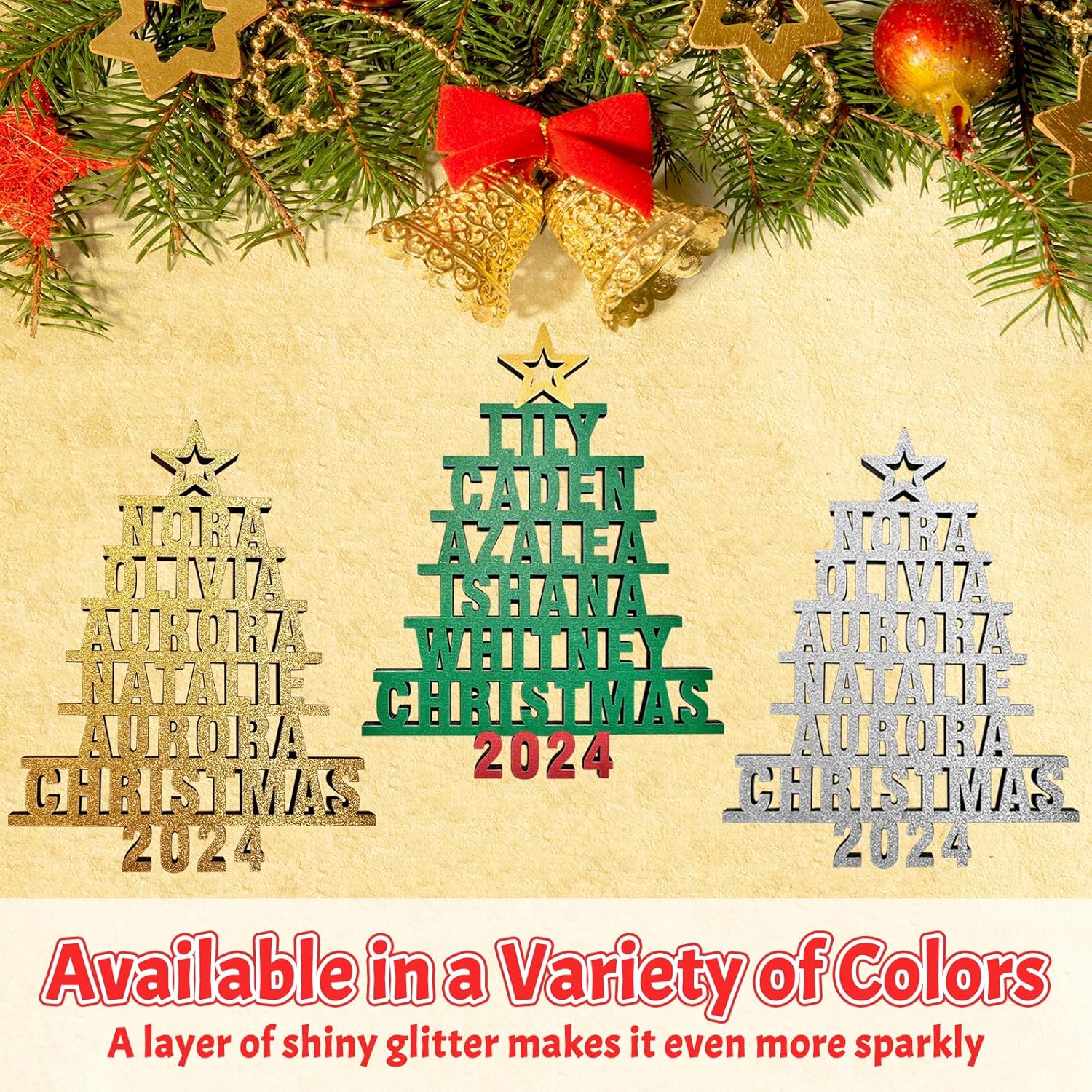 - 【Multi-Color Styles Available】: Personalized Christmas tree name ornaments are available in 3 colors and styles. Buy according to your favorite style, and the warm Christmas decoration will not forget every member of the family
