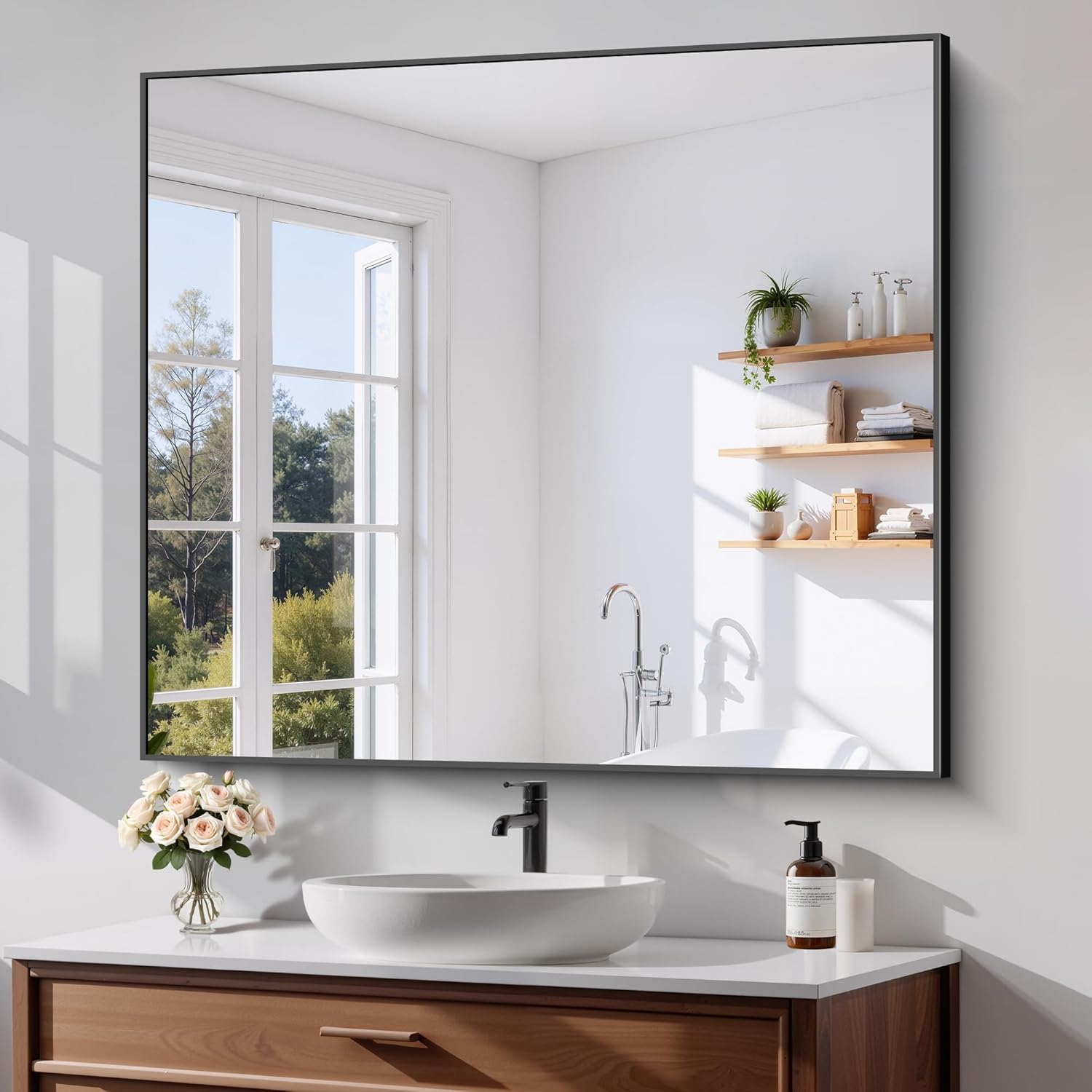 - SAFE USE: Black bathroom Mirror safety backing strengthens the glass surface, making it less prone to breakage and falling off, you can use it with confidence, the mirror design is simple, and the universal size can adorn your room well.