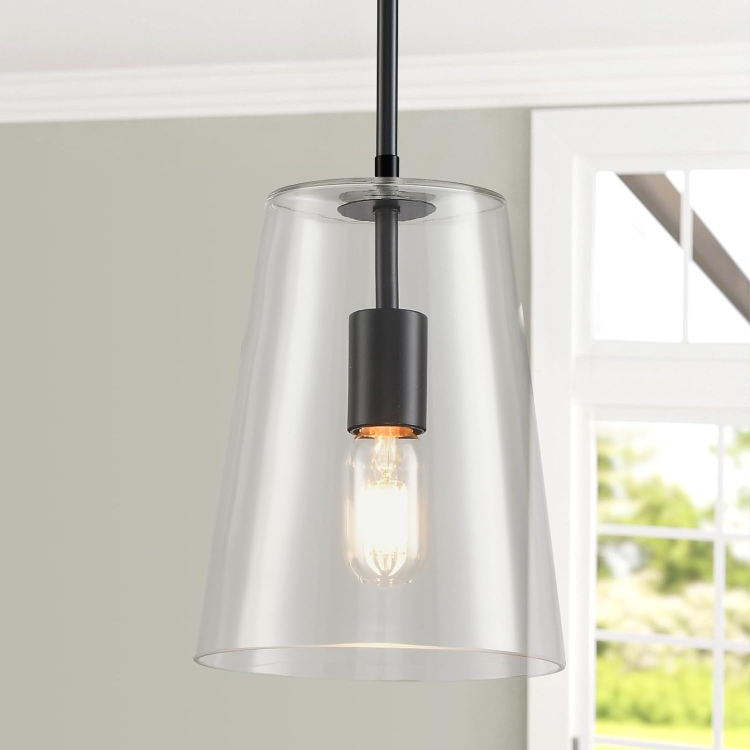 - Bulbs and Warranty - Black pendant light fixture comes with glass shade that has a big diameter of 7.5" and a height of 9.5" compatible with most standard medium base E26 bulbs.Dimmable when used with compatible dimmer switch.Smart bulbs works well.Any questions,our customer support team is here to help in 24 hours