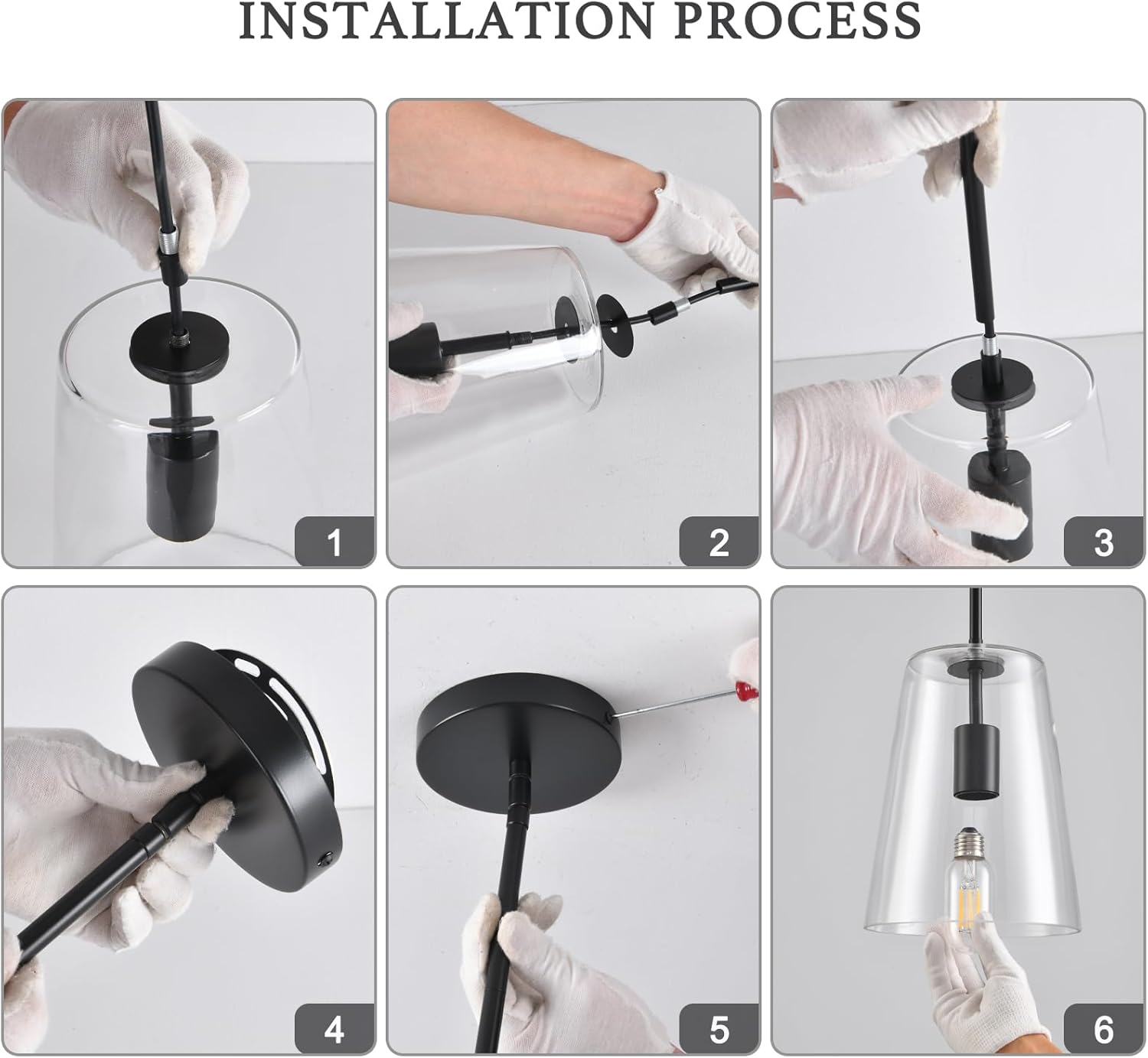 - Clear Glass Shade - this kitchen island pendant light fixture gets super nice clean and clear glass.It has a wide enough opening for daily care to keep fixture clean and clear.Gloves provided to avoid getting fingerprints on the glass.
