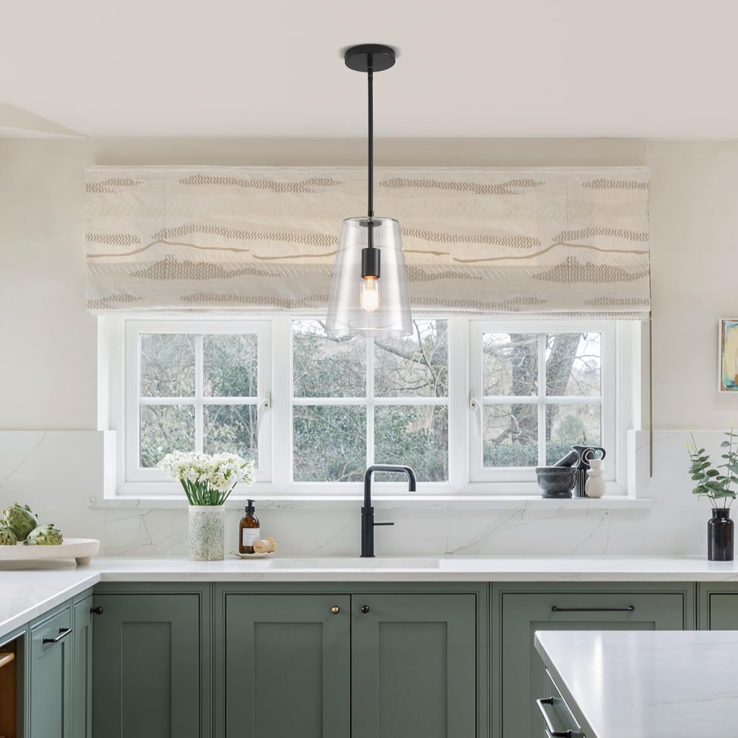 - Modern Style - Install in single as a kitchen sink light or in groups as pendant lights kitchen island,bar counter hanging lights.Kitchen pendant lighting over island is perfect for modern and transitional designs.