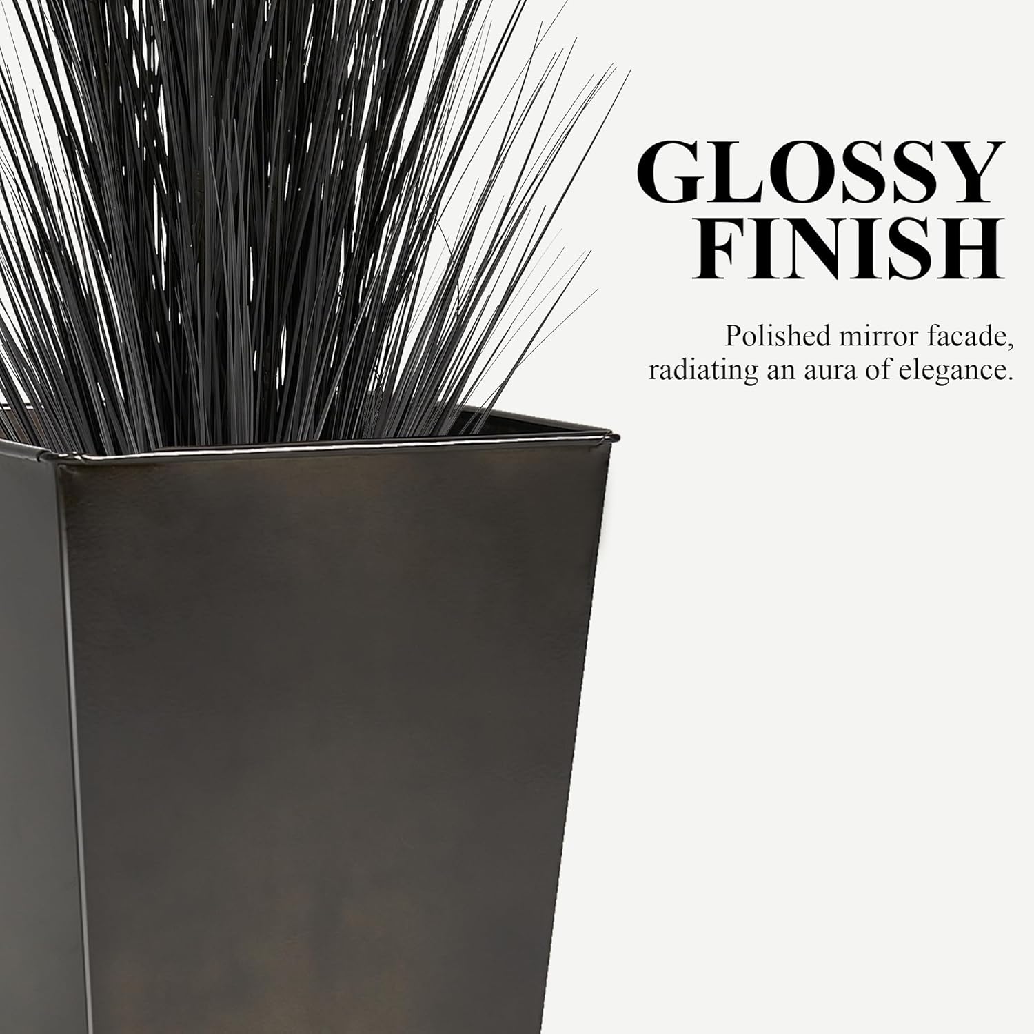 WORTH Garden 25" Large Metal Glazed Planter Set of 2, Luxurious Glossy Finish Black Tall Square Tapered Steel Plant Pots, Decor Flower Pot Indoor & Outdoor, Drainage Hole & Dual-Purpose Plant Saucer
