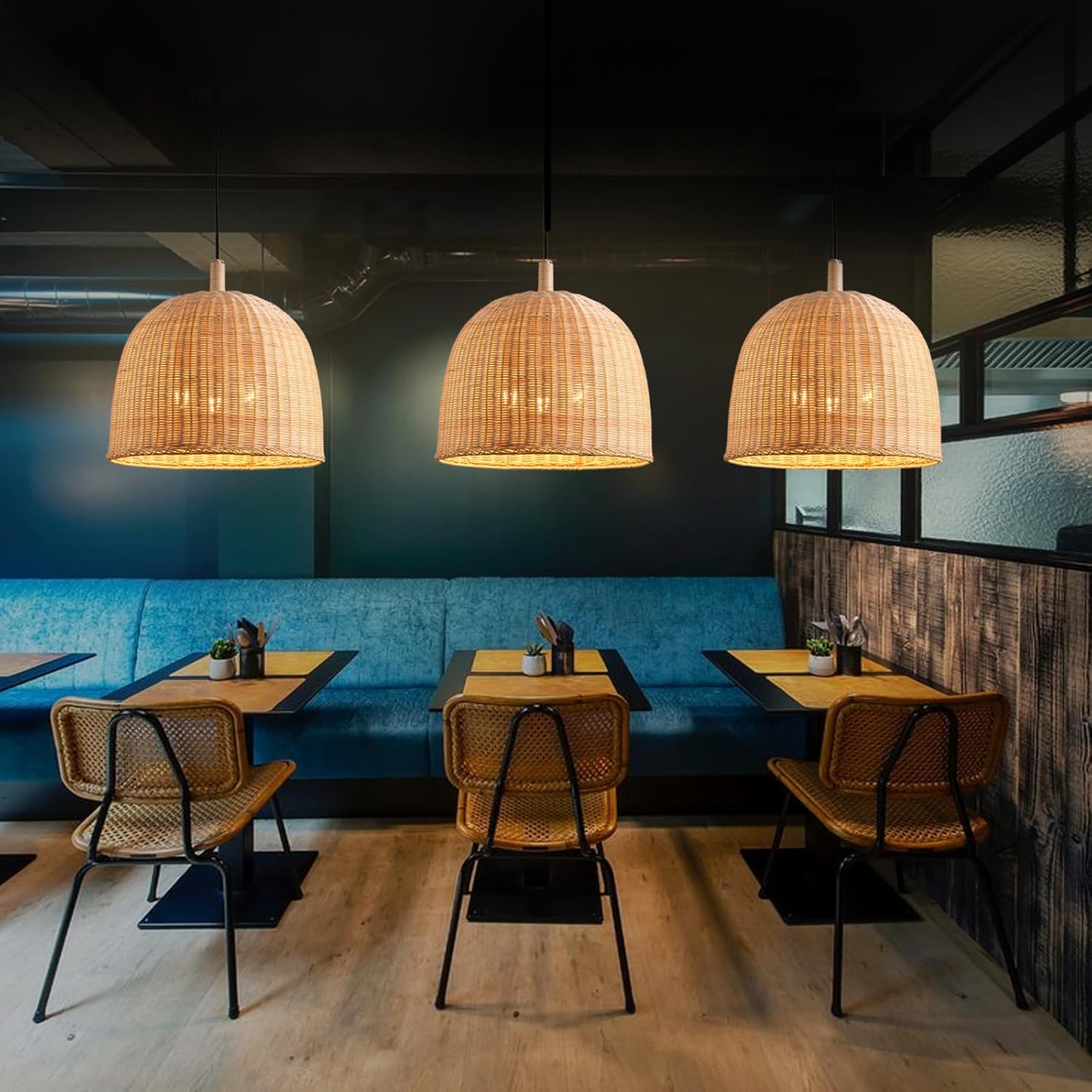 - 【Hand-Woven Rattan Chandelier Natural Material】Rattan craft is selected from the trees we grow , which undergoes various processing procedures. This Rattan craft is heat resistant, fade resistant, safe and healthy