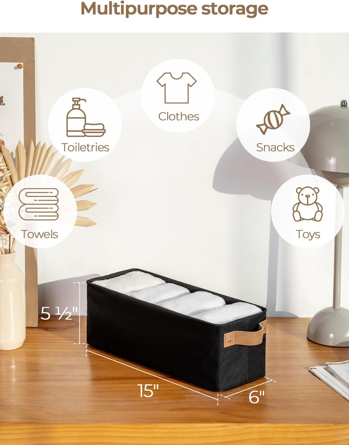 - Versatile Storage: This narrow storage bin is suitable for organizing clothes in the closet, miscellaneous items in cabinets or wardrobes, cosmetics and toiletries in the bedroom, and even office supplies in various settings.