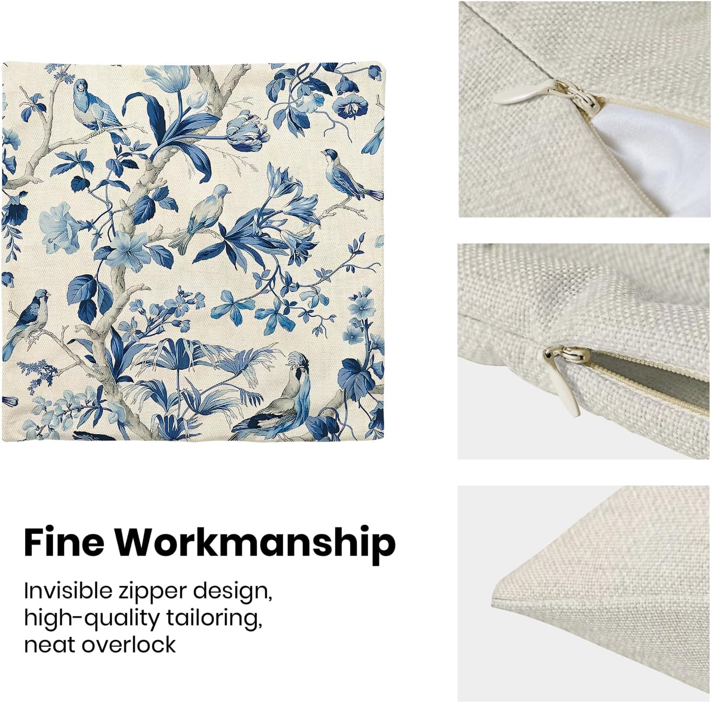 - 【Square Pillow Covers Size】 Chinoiserie flower birds pillow case set includes 2 pcs of farmhouse couch pillow covers (NO Pillow). Home decor farmhouse pillow covers measures 18x18 inch/ 45x45 cm. All the floral decor throw pillow covers have a hidden zipper. It is easy to insert or remove the pillow core to replace the spring pillowcase. Easy to clean and wash, sturdy and not easy to damage.