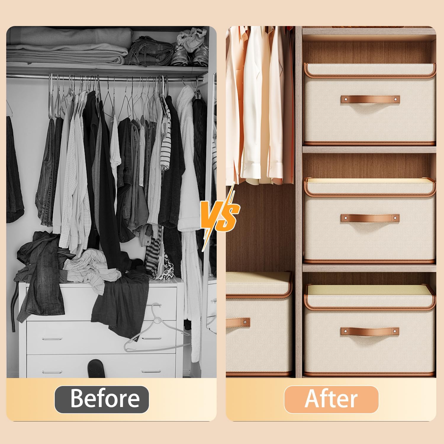 - Large Storage Bins with Lids and Leather Trim: This lid provides added protection for your belongings inside the cube storage organizer, ensuring they stay safe and secure. The leather trim reduces wear, while the convenient handles add to the overall convenience. It's a thoughtful design that extends the usability of the fabric storage boxes with lid