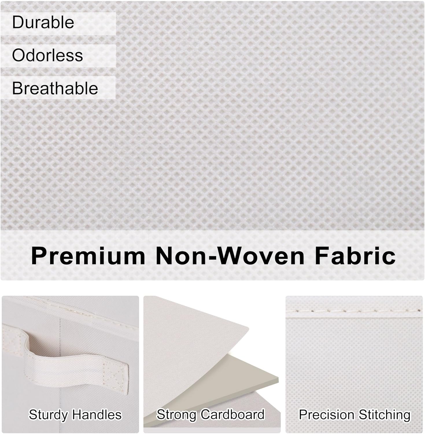 - Premium Material: These storage baskets are made from odorless non-woven fabric and reinforced with sturdy cardboard for durability.