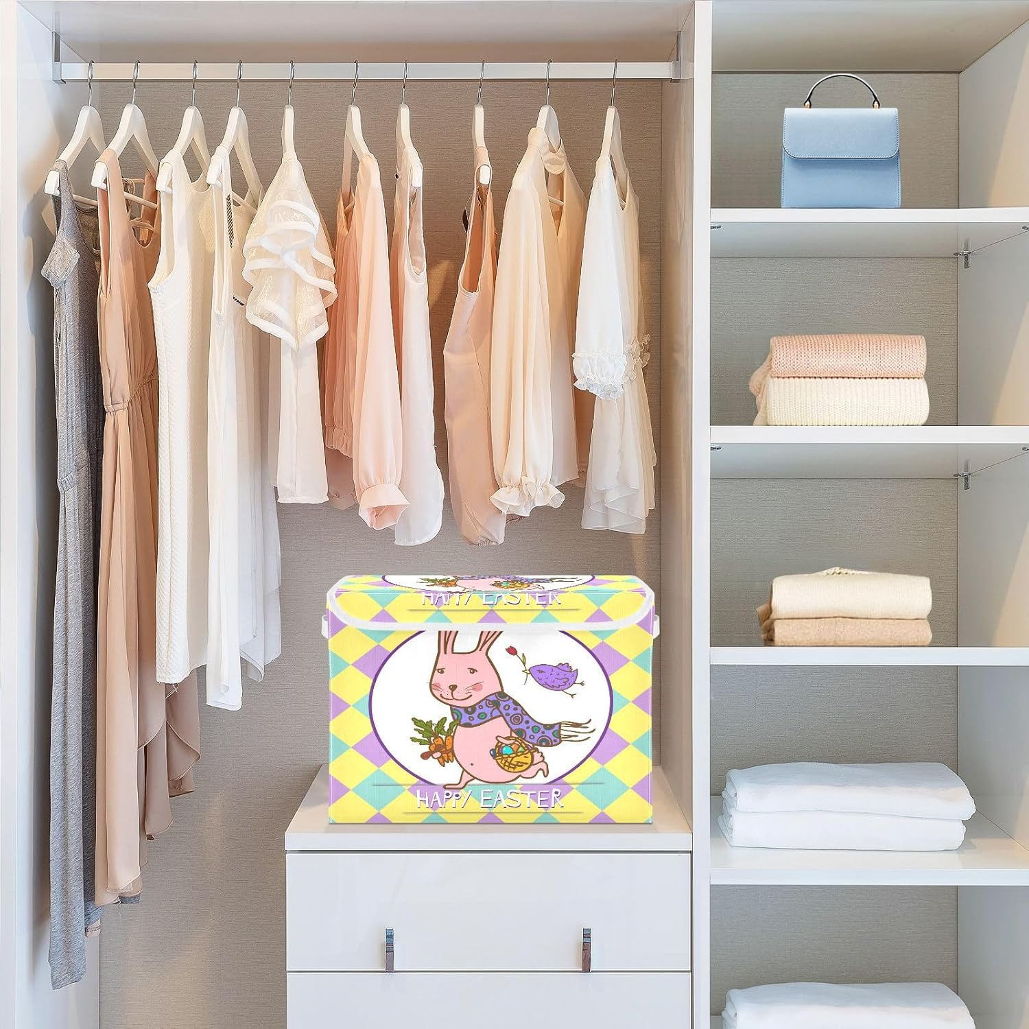 susiyo Easter Bunny Illustration fabric storage baskets with lids,Collapsible Storage Boxes,Foldable storage boxes with handles for Home,Office,Closet Organization