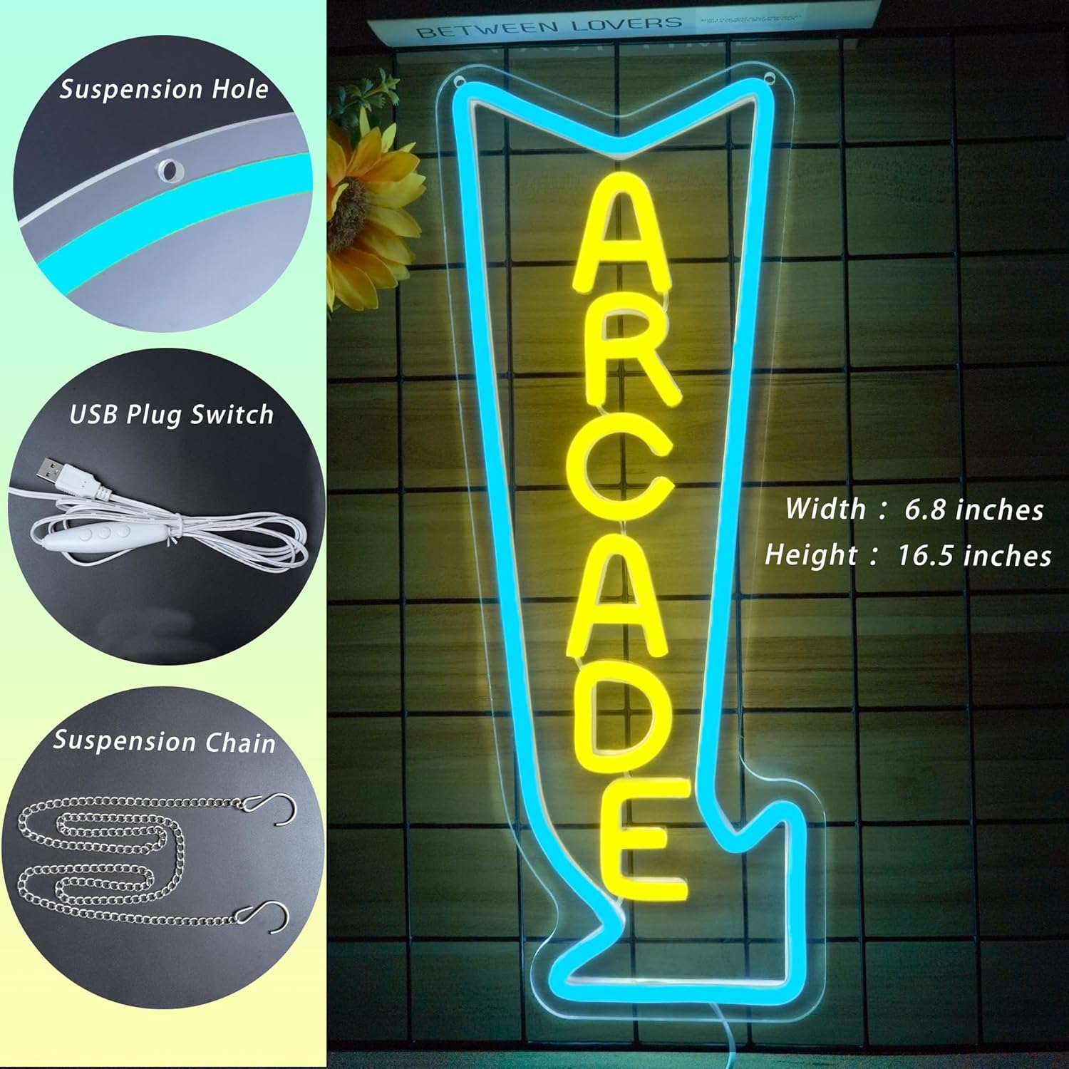 - Dynamic LED Lighting: This "ARCADE" neon sign features high-quality LED lights that provide a bright and vibrant glow. The combination of ice blue and lemon yellow creates a striking visual that will enhance any space.