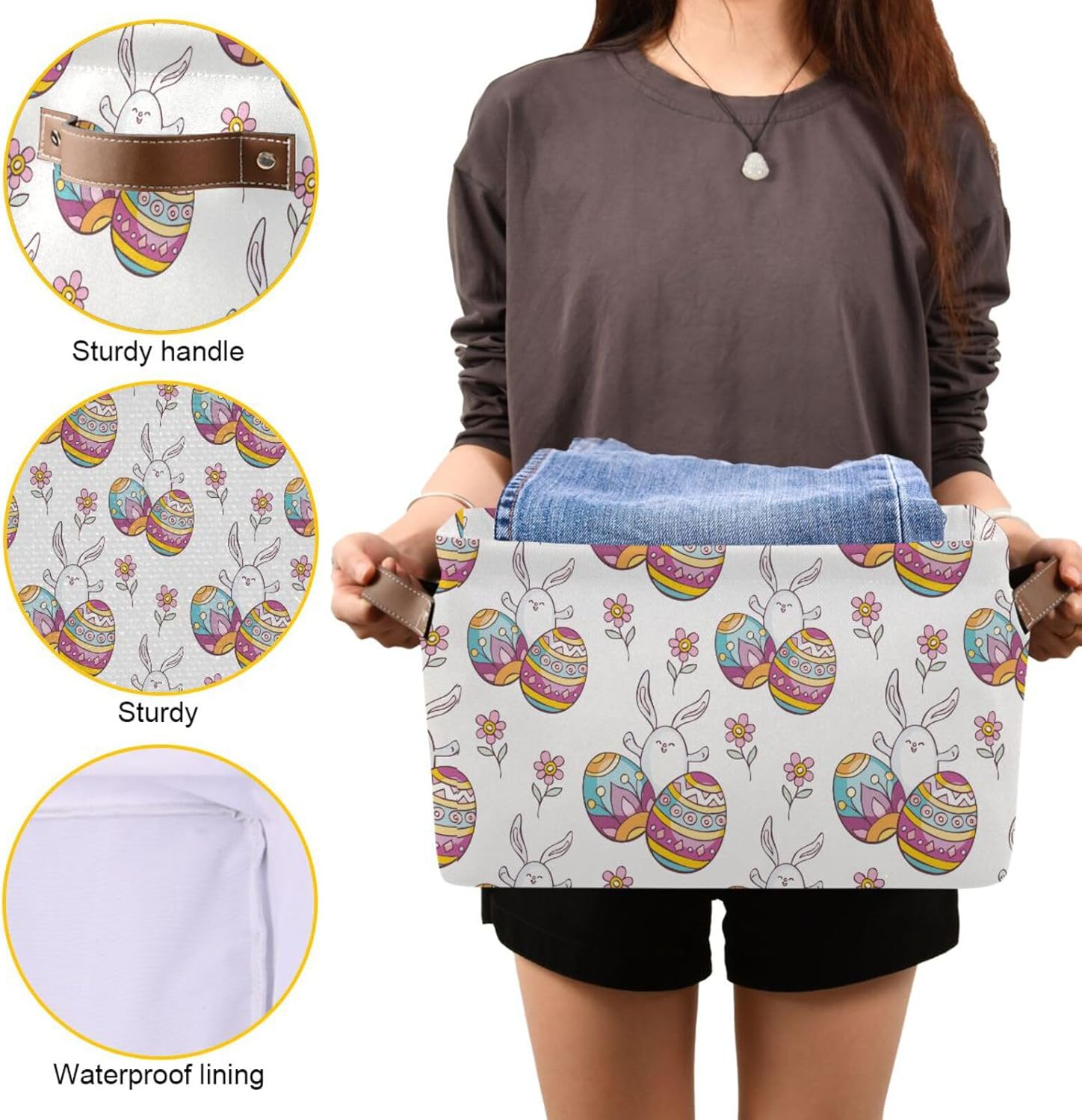 susiyo Easter Storage Basket with Handles, Cute Easter Rabbit Egg Large Foldable Fabric Collapsible Storage Bins Organizer Bag for Storage