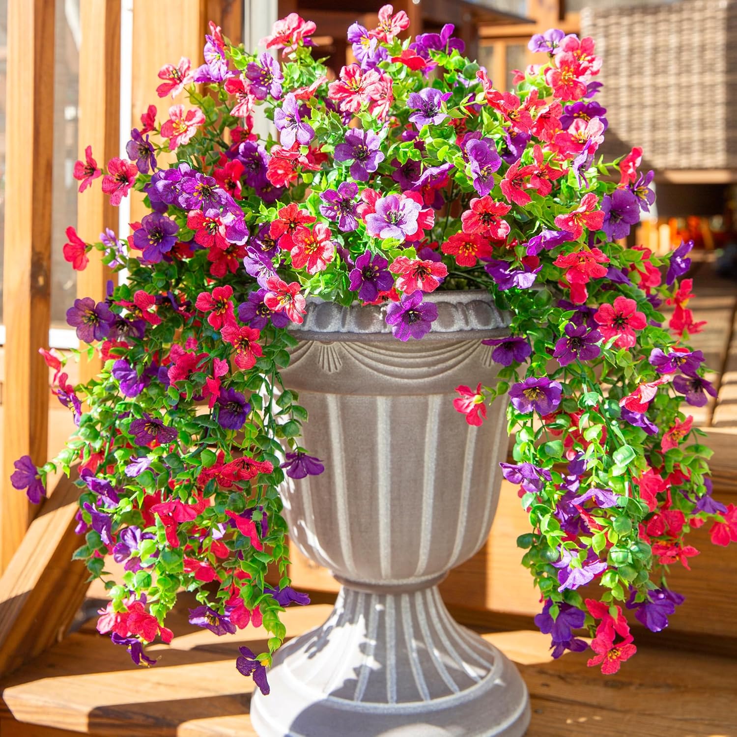 - All Occasions Decoration: Beautiful artificial outdoor hanging plants are suitable for home, garden, porch, patio, balcony, yard, window box, urn, planter, pathway, entry, front door, flowerbed, indoor and outside decorations. Brings beauty to your home all seasons.