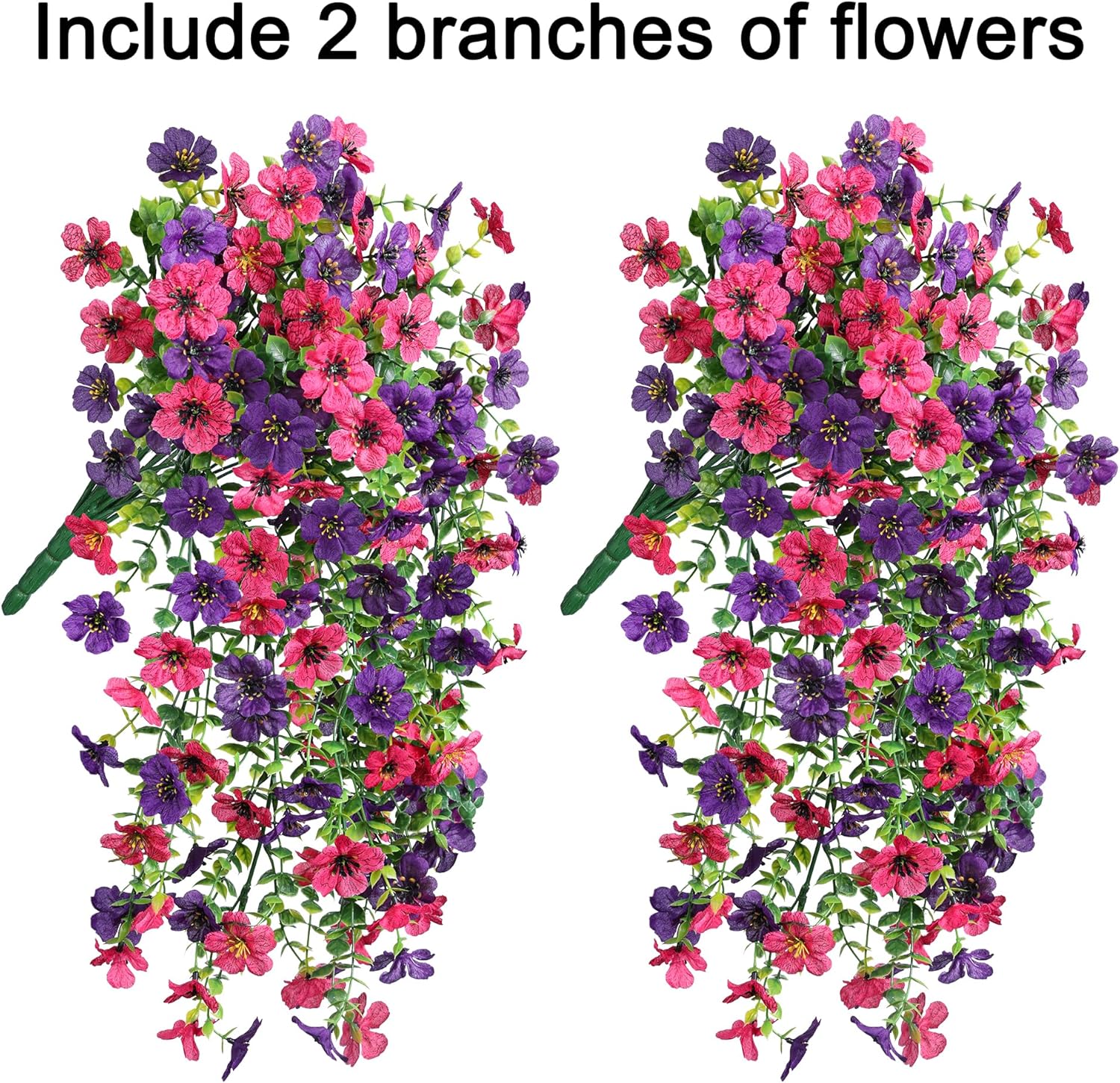 - Durable and UV Weather-Resistant: The fake hanging plants flowers are made of high quality silk cloth and plastic, UV and all weather resistant, waterproof and no fade in the sun and rainstorm.