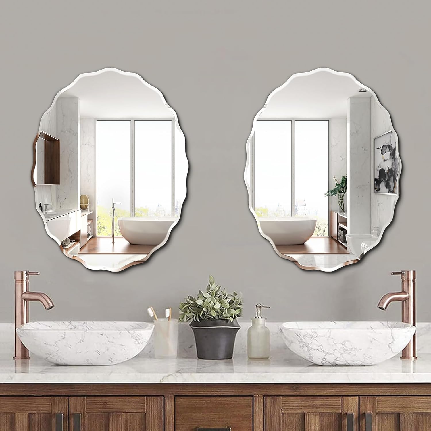 - Stylish Design: Frameless design combines with beveled edge gives the oval wall mirror a sleek and contemporary look. Polished edges ensure safety and a refined appearance. It's not only a practical reflection tool, but also an ideal wall decor mirror, adds a touch of sophistication to any room decor.