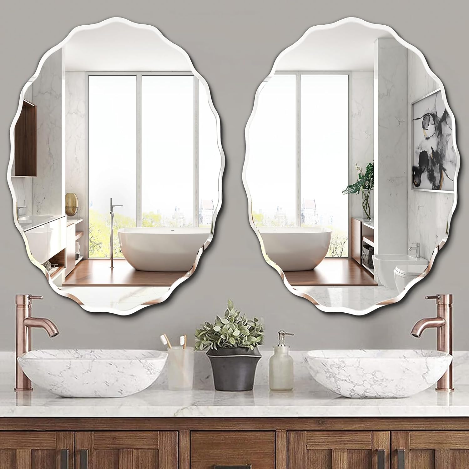 - Stylish Design: Frameless design combines with beveled edge gives the oval wall mirror a sleek and contemporary look. Polished edges ensure safety and a refined appearance. It's not only a practical reflection tool, but also an ideal wall decor mirror, adds a touch of sophistication to any room decor.