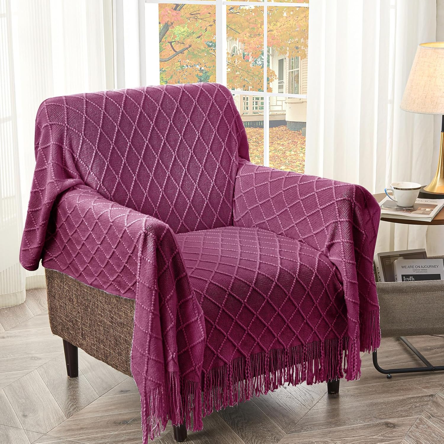 - 【GIFT IDEAS】: Special knitted diamond patterns add a unique accent to your room and people draping it as a shawl. Very suitable for tasteful homeowners. Throw blanket for women, classic but not too tacky as a housewarming gift. Tips: Due to different lighting, display settings, or resolutions, the difference in color happens. We are dying to show the color. To do so, one of the images shows the color difference in different lighting. Hope these instructions would help you to buy a throw.