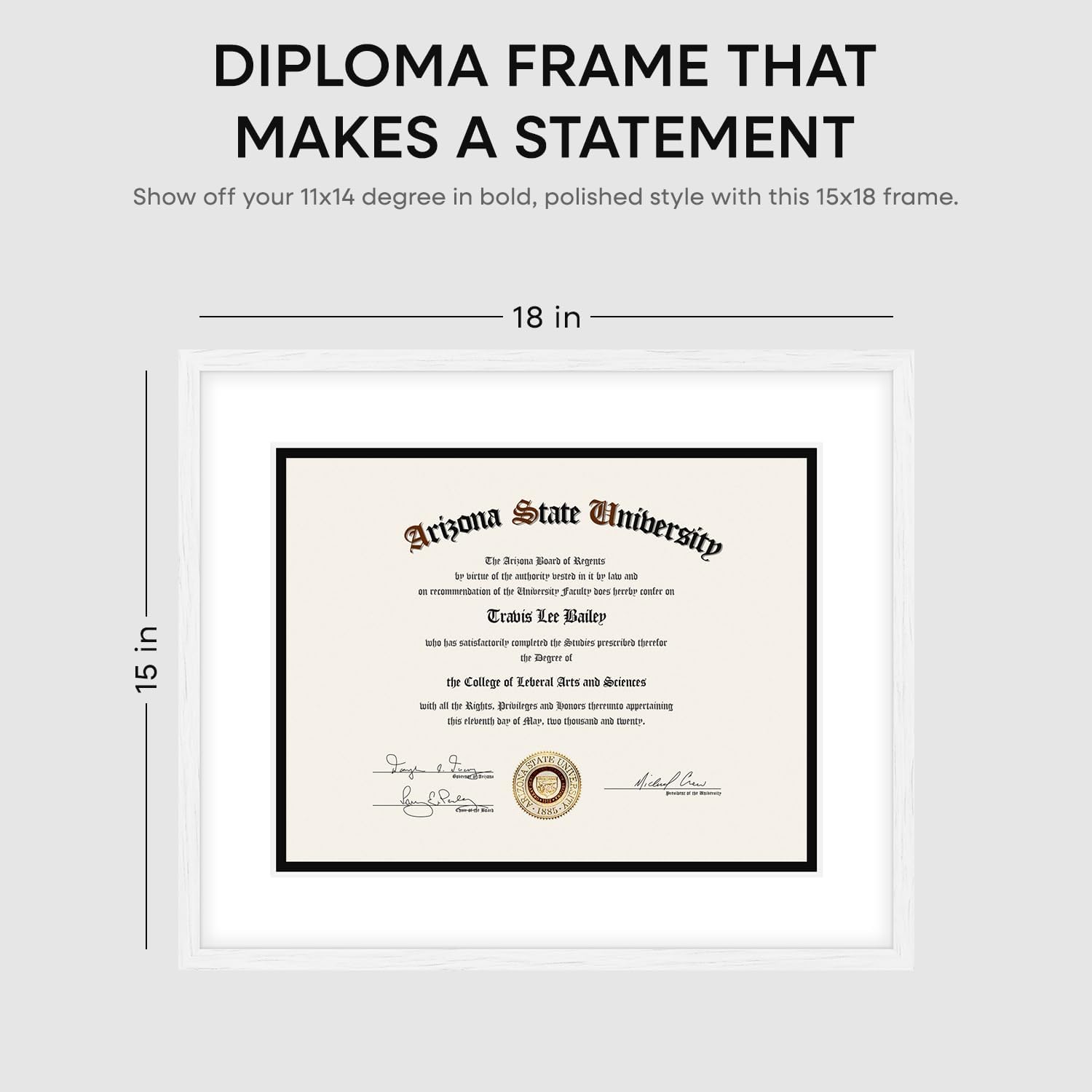 Homeforia 15x18 Diploma White Wood Frame, High End Oak 15 x 18 Certificate Frames with Mat 11 x 14, 15by15 Document Frame Matted to 11by14, Graduation Wooden Frames, Tempered Glass, Wall Kit, Set of 1
