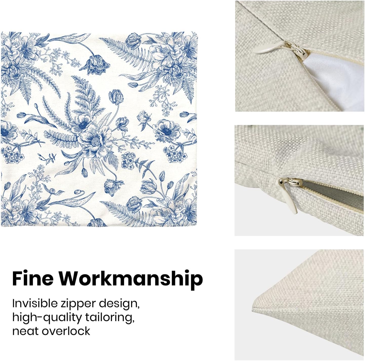 - 【Spring Pillow Covers】 Our Chinoiserie floral throw pillow covers 22x22 inch are made of excellent breathable polyester cotton fabric. The Blue and White floral decorative pillow covers is durable, soft and skin-friendly. The plant outdoor pillow covers adopt exquisite edging technology and four sides of our floral pillow covers are sewn firmly, which is not easy to open the line.
