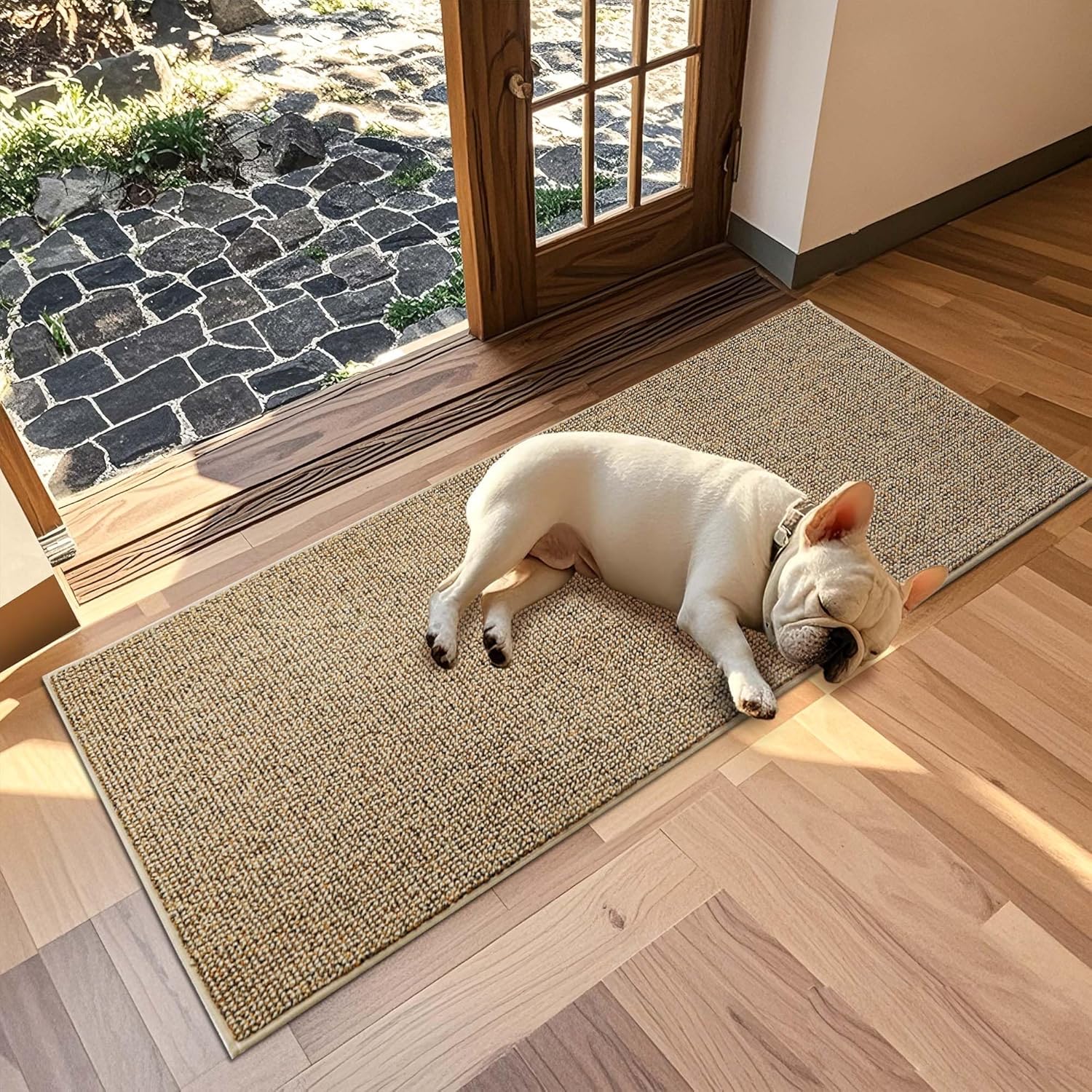 JSEI Dirt Trapper Door Mat 24"x60" Non-Slip Washable Entrance Mat, Dog Doormats, Absorbent & Fade-Resistant Floor Mats, Low Profile Welcome Mats for Entryway, Front Door, and Inside Entrance, Beige