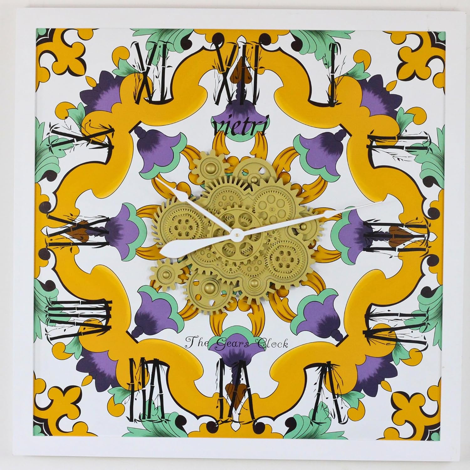 The Gears Clock Wall Clock Italy Collection with Moving Gears (Vietri, 36 inch Square)