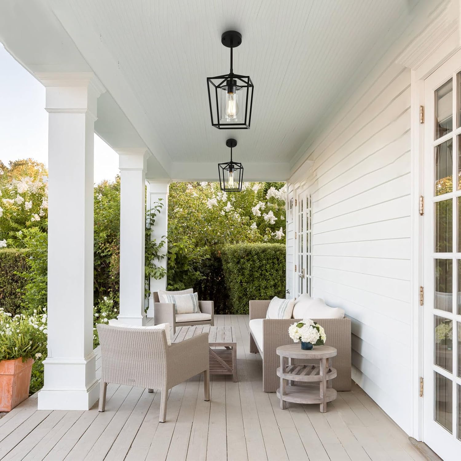 - 【Quick Installation】Open frame of this black cage hanging light makes it super easy to assemble the glass lampshade and replace the bulb. All accessories are included to set up this dinning room light fixtures, and you'll enjoy the ease of installing.