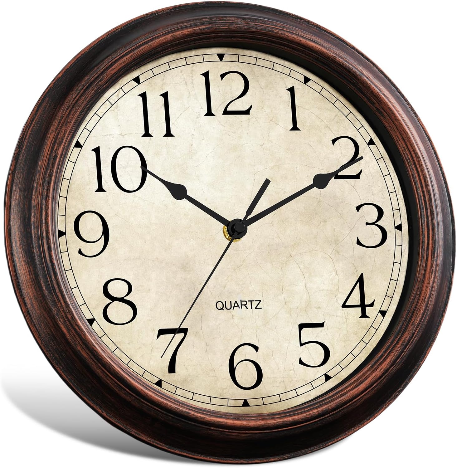Wall Clock 10 Inch Battery Operated Silent Non-Ticking Analog Wall Clocks Vintage Retro Rustic Style Decorative for Bedroom Living Room Kitchen Office (Bronze)