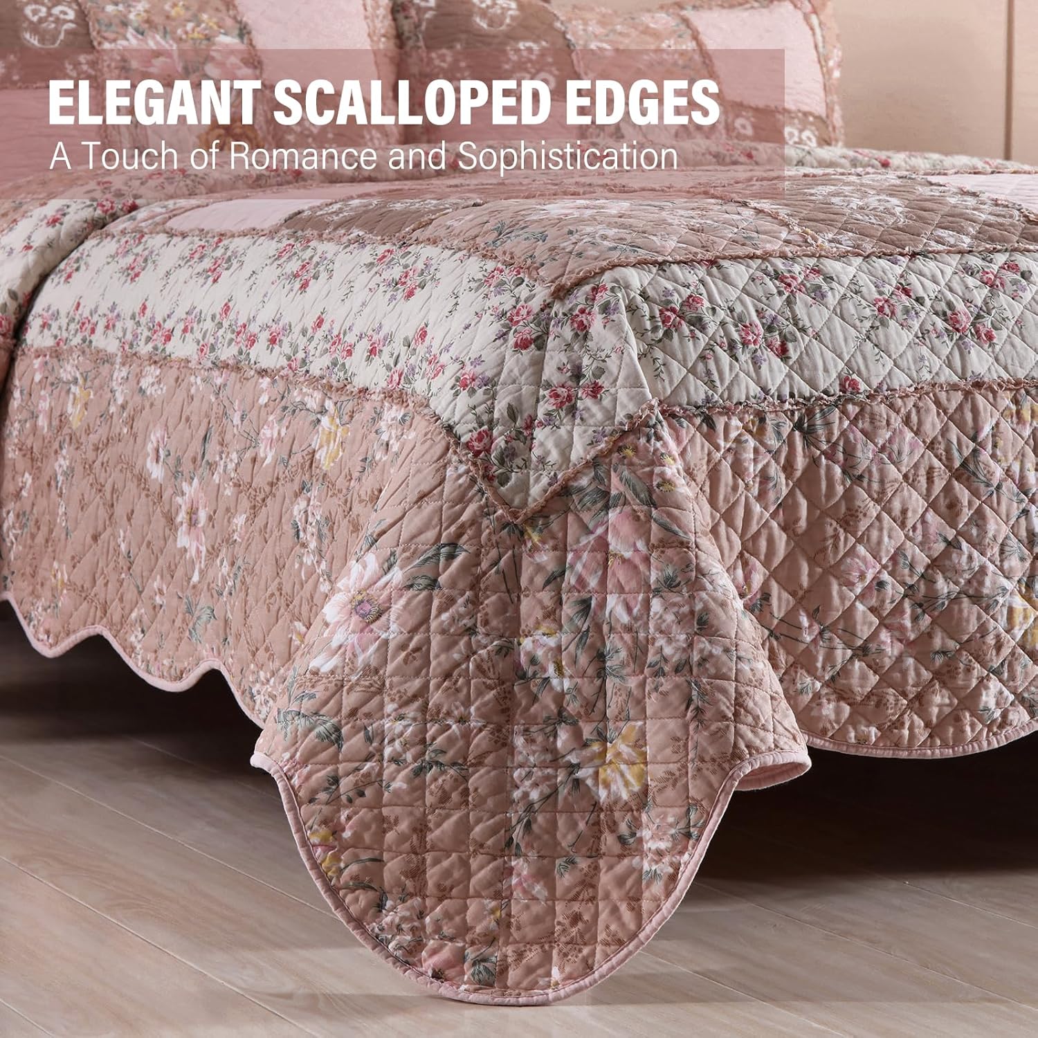 - 【Craftsmanship Patchwork】: NEWLAKE Cotton Quilts made of different pieces of individually printed floral cotton fabric that are sewn together, this bedspread showcases a Vintage Flowery Grid Pattern with Real Stitched Embroidery. With its mix of floral elements and Pink colors, this quilt adds a touch of luxury and charm to any room, instantly enhancing its appeal