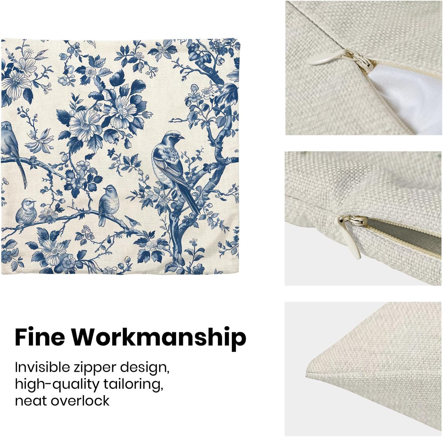 - 【Square Pillow Covers Size】 Chinoiserie flower birds pillow case set includes 2 pcs of farmhouse couch pillow covers (NO Pillow). Home decor farmhouse pillow covers measures 16x16 inch/ 40x40 cm. All the floral decor throw pillow covers have a hidden zipper. It is easy to insert or remove the pillow core to replace the spring pillowcase. Easy to clean and wash, sturdy and not easy to damage.