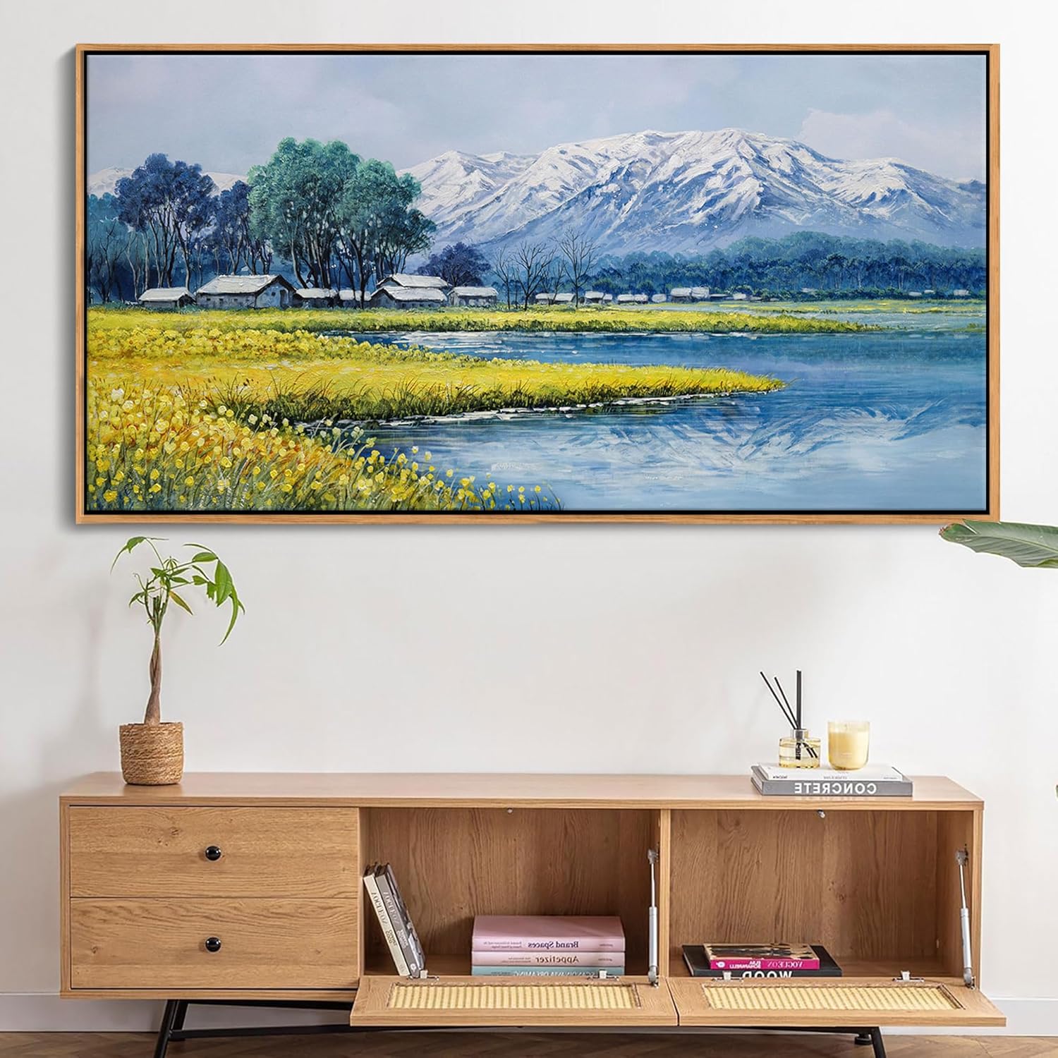 - Landscape Wall Art Size:This 29×58 inches canvas art captures the serene beauty of Japanese mountain landscapes, with yellow tones that add a touch of rustic charm to your living room, bedroom, or office.