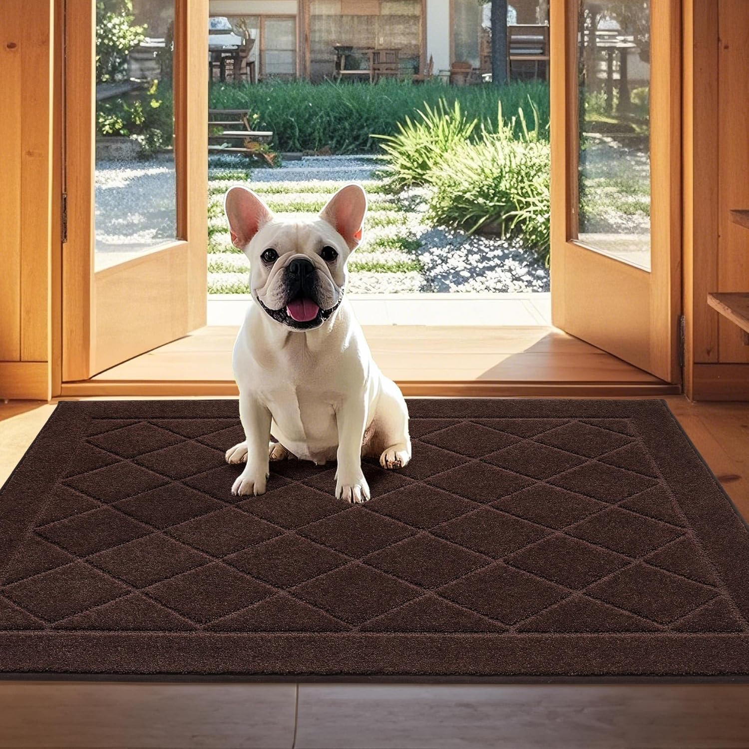 JSEI Dirt Trapper Door Mat 32"x48", Non-Slip Washable Entryway Mats, Dog Door Mat, Stain Resistant and Absorbent Floor Mats, Low Profile Welcome Mat for Front Back Door, Brown