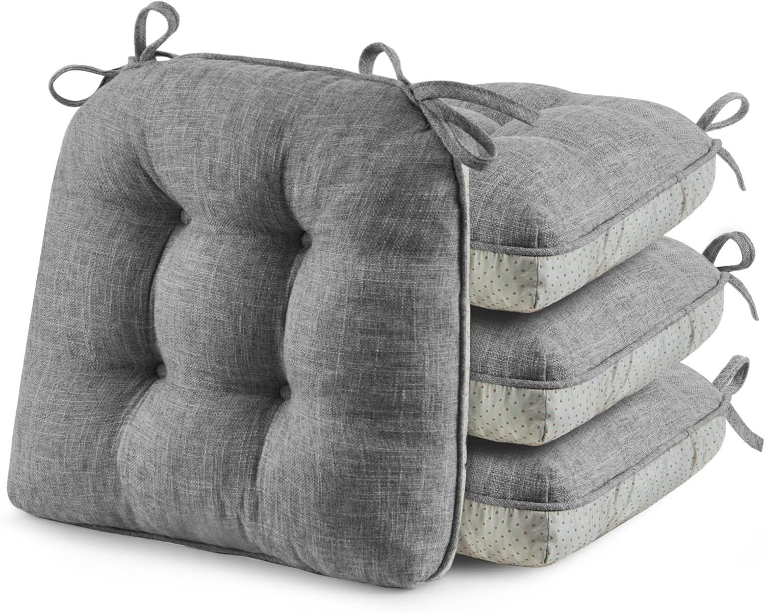 puredown® Chair Cushions for Dining Chairs, Tufted Memory Foam Chair Pads with Non-Slip Backing, Kitchen Seat Cushions with Ties, Washable Seat Pad Set of 4, 15.5" x 15.5" x 4", Dark Grey