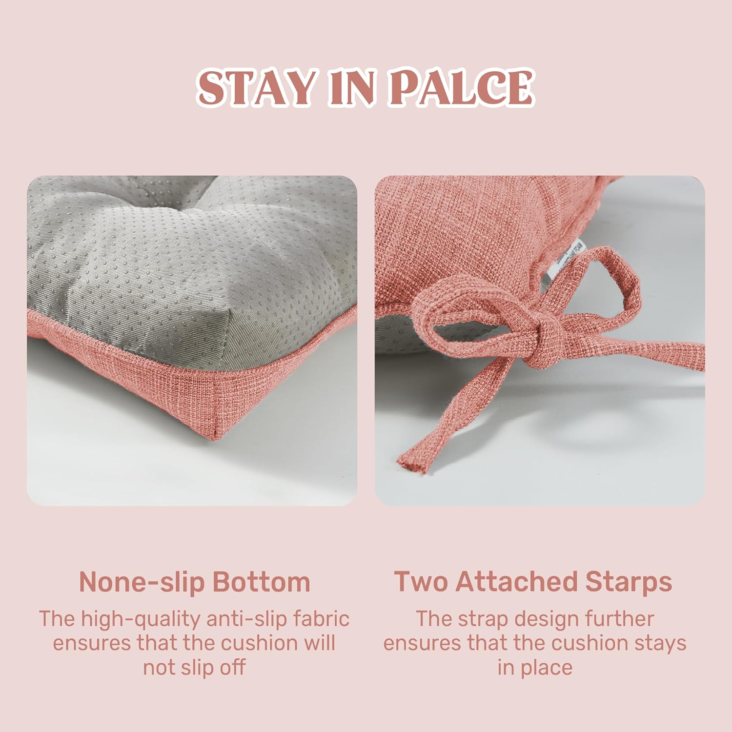 puredown® Chair Cushions for Dining Chairs, Tufted Memory Foam Chair Pads with Non-Slip Backing, Kitchen Seat Cushions with Ties, Washable Seat Pads Set of 4, 15.5" x 15.5" x 4", Pinky