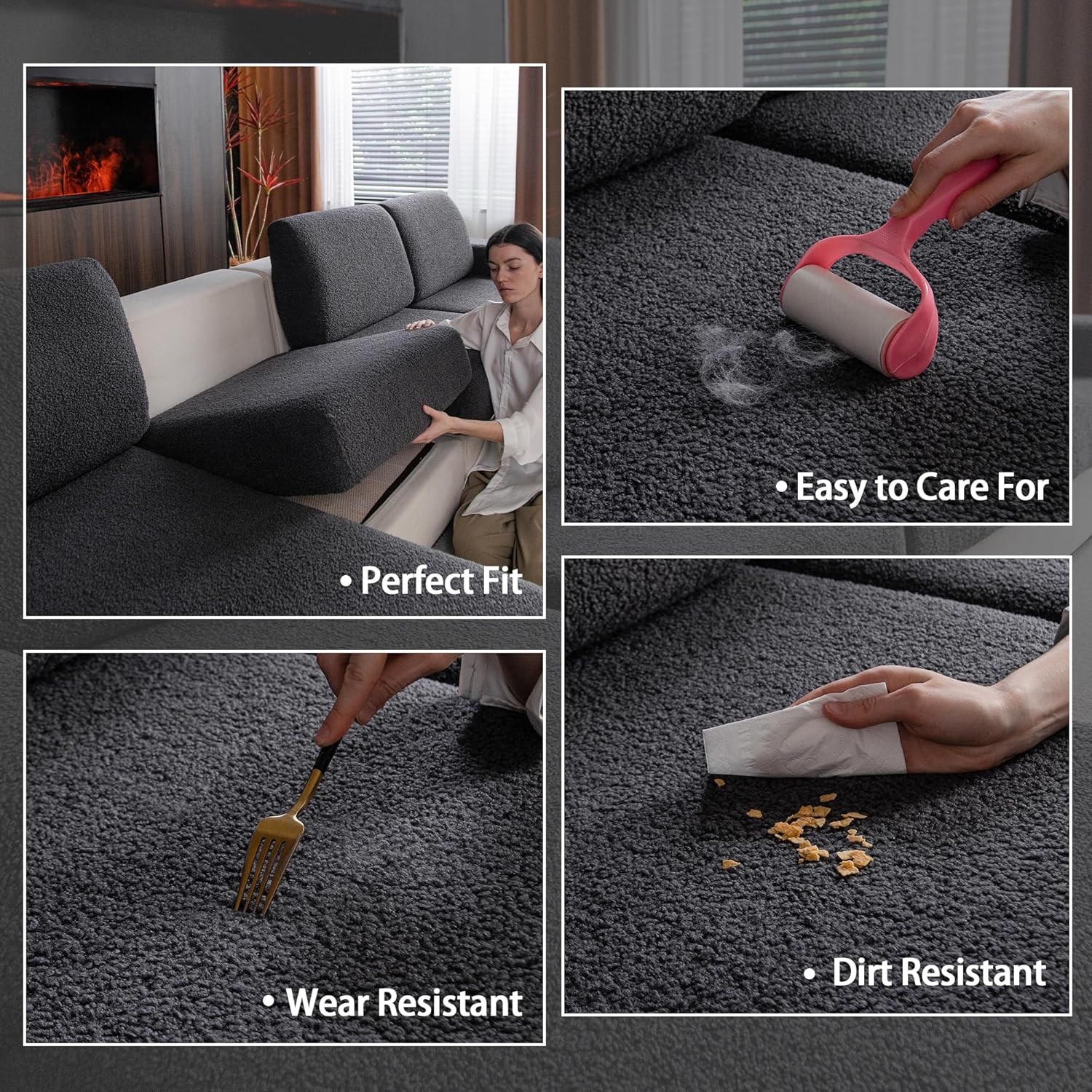 Couch Cushion Covers for Sectional Sofa, Stretch Soft Sofa Slipcovers Washable Wear-Resistant Universal Furniture Protector for Living Room(3 Seaters Covers+1 Chaise Cover, Dark Gray)