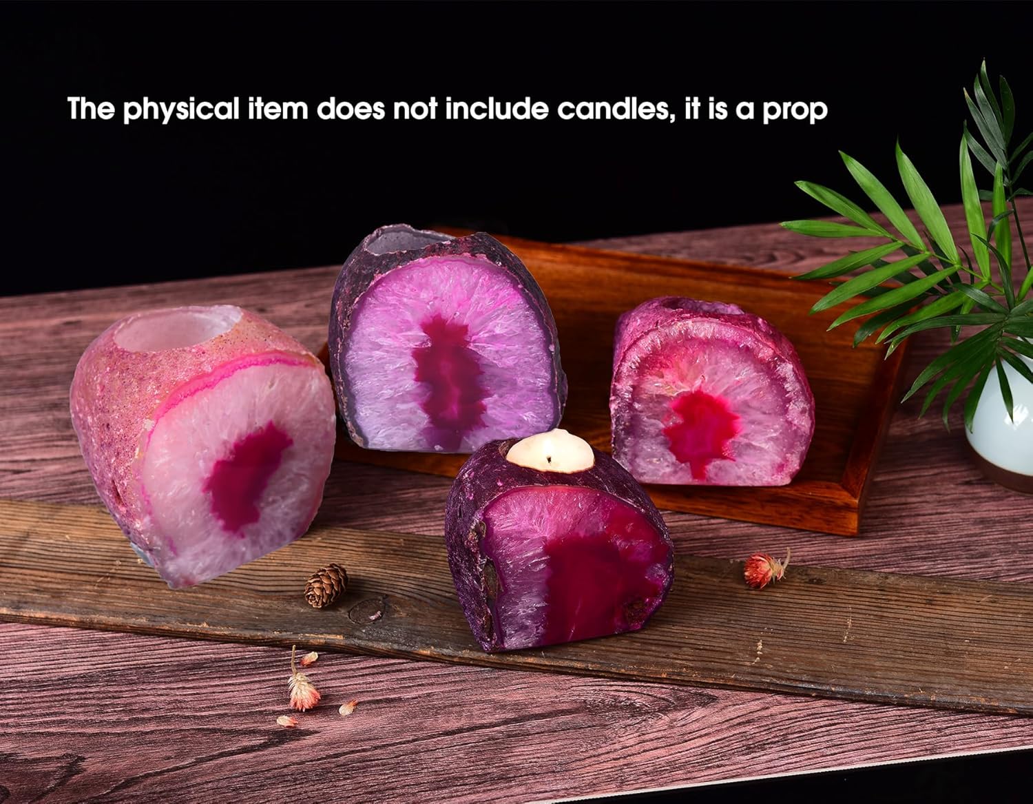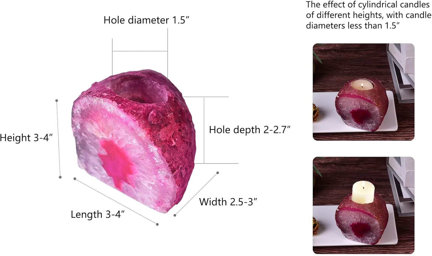 AMOYSTONE Dual-Purpose Agate Stone, 1-1.5lb Plant Terrarium & Candle Holder Base, for Boho Home Office Accent