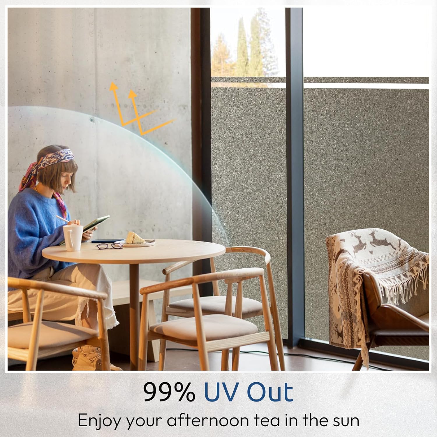 - UV Protective: Protect your skin and furnishings with UV Blocking Window Film. Our product not only offers privacy but also filters out harmful ultraviolet rays, reducing the risk of sun damage inside your home. Enjoy peace of mind knowing you're shielded from the sun's adverse effects