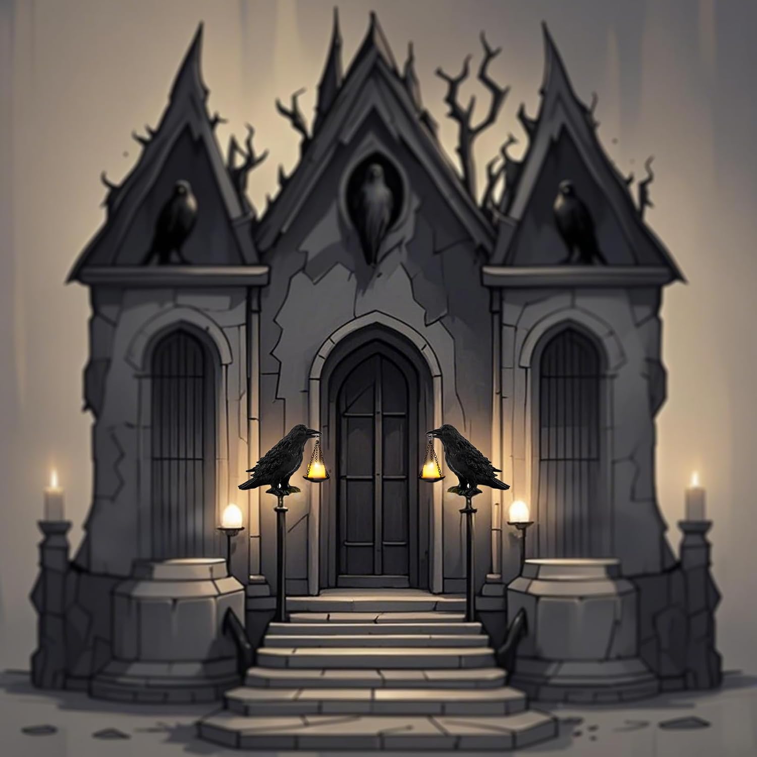 - Gothic Halloween Decor: Enhance your Halloween ambiance with the eerie Crow Lamp, featuring a crow holding a black plate that can hold tealights or fake candles. This unique piece adds a touch of mystery and sophistication to your Halloween decor.