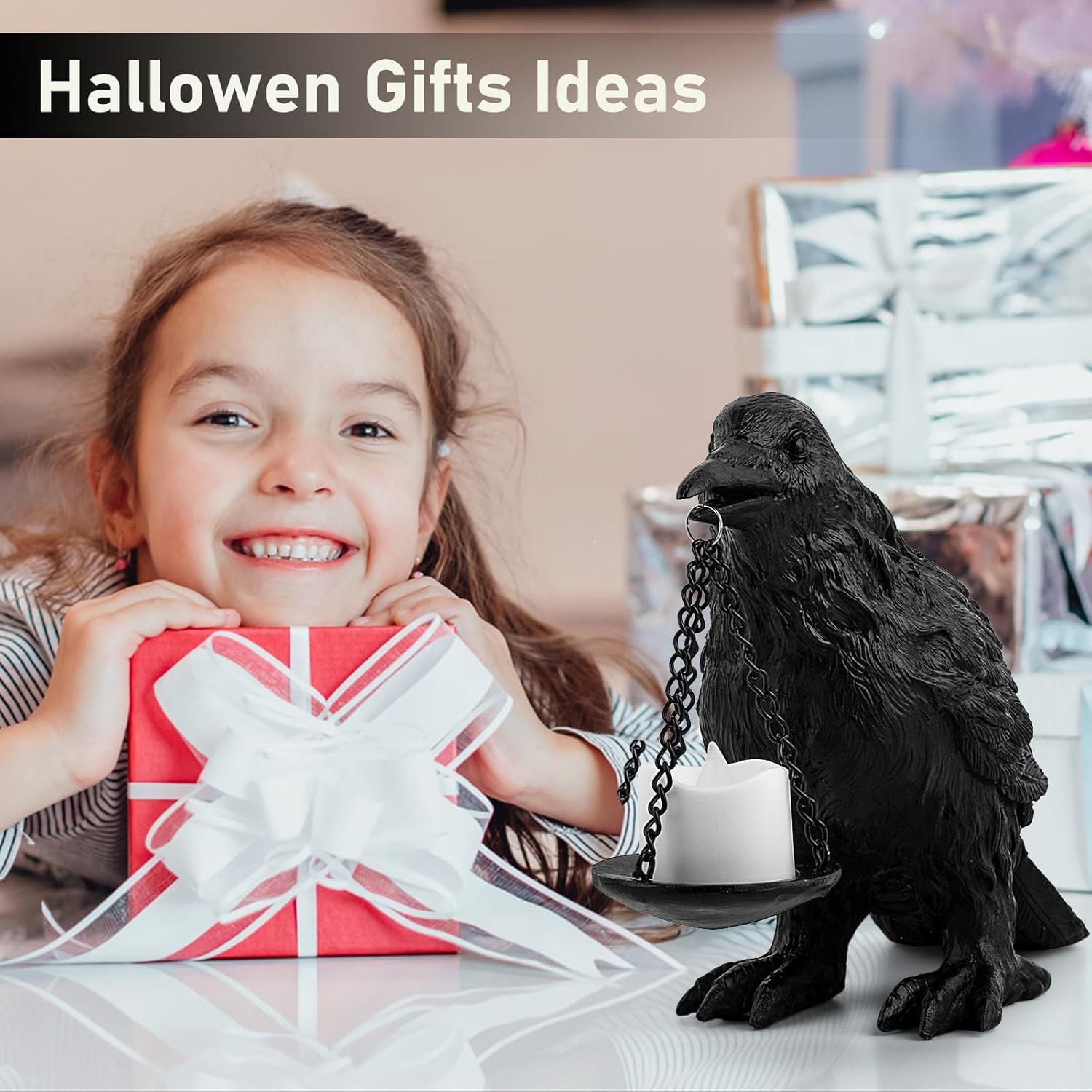 - Durable and Safe Materials: Crafted from high-quality resin, this raven tealight candle holder is both sturdy and safe for holding tealight candle or faked candles, ensuring your Halloween celebrations are both delightful and worry-free.