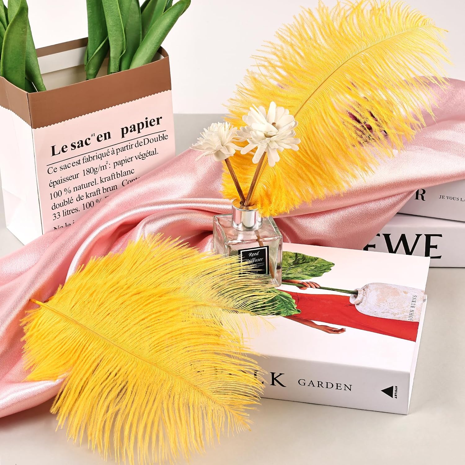 THARAHT Golden Yellow Ostrich Feathers 24pcs Natural Bulk 8-10Inch 20cm-25cm for Crafts Wedding Party Centerpieces Halloween and Home Decoration Feathers