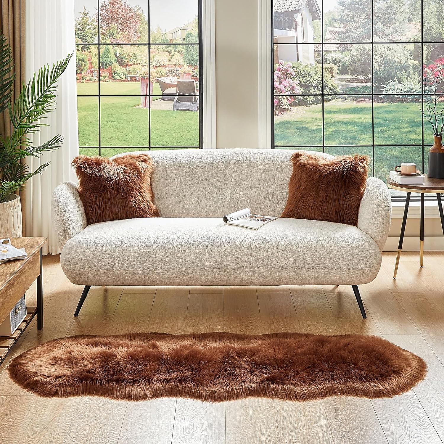 AMTOVO Faux Sheepskin Rug, Coffee Ultra Soft Fluffy Shag Area Rug, 2 x 6 ft Faux Fur Rug for Bedroom Sofa Throw Cushion Room Decor, Sheepskin