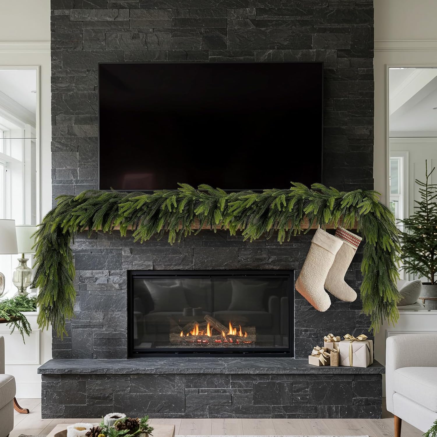 - Widely Used: Artificial Norfolk pine garlands are perfect decoration for in indoor and outdoor, Christmas holiday. It can be a wonderful centerpiece by simply hang them on the table, mantel, front doors, living rooms, windows, walls, fireplaces and anywhere you want