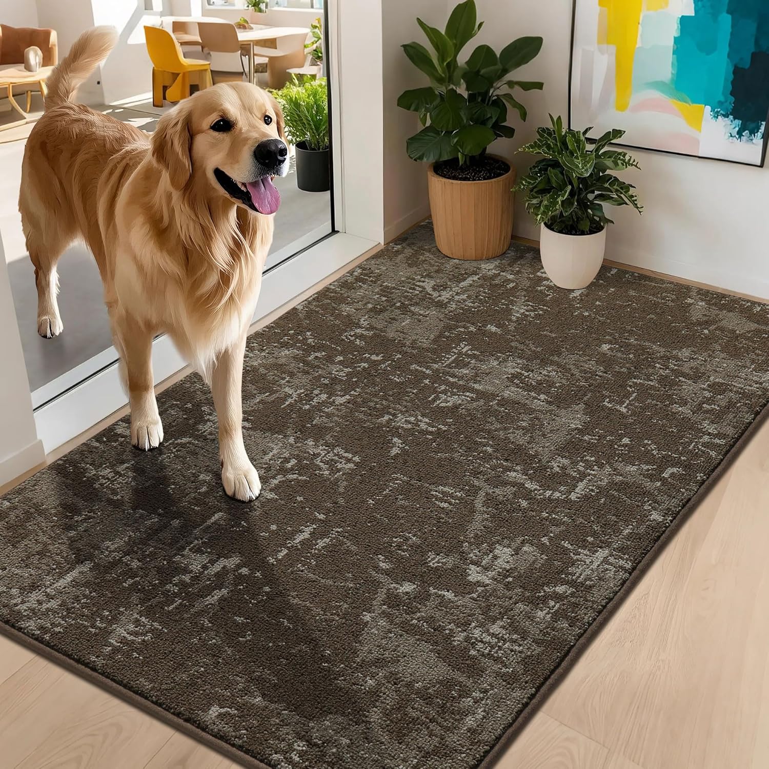BEQHAUSE Dirt Trapper Door Mat 32"x48" Non-Slip Door Mats Washable Entryway Rugs Stain Resistant Doormat Absorbent Welcome Floor Mat for Front Back Door, Muddy Wet Shoes & Paws,Brown