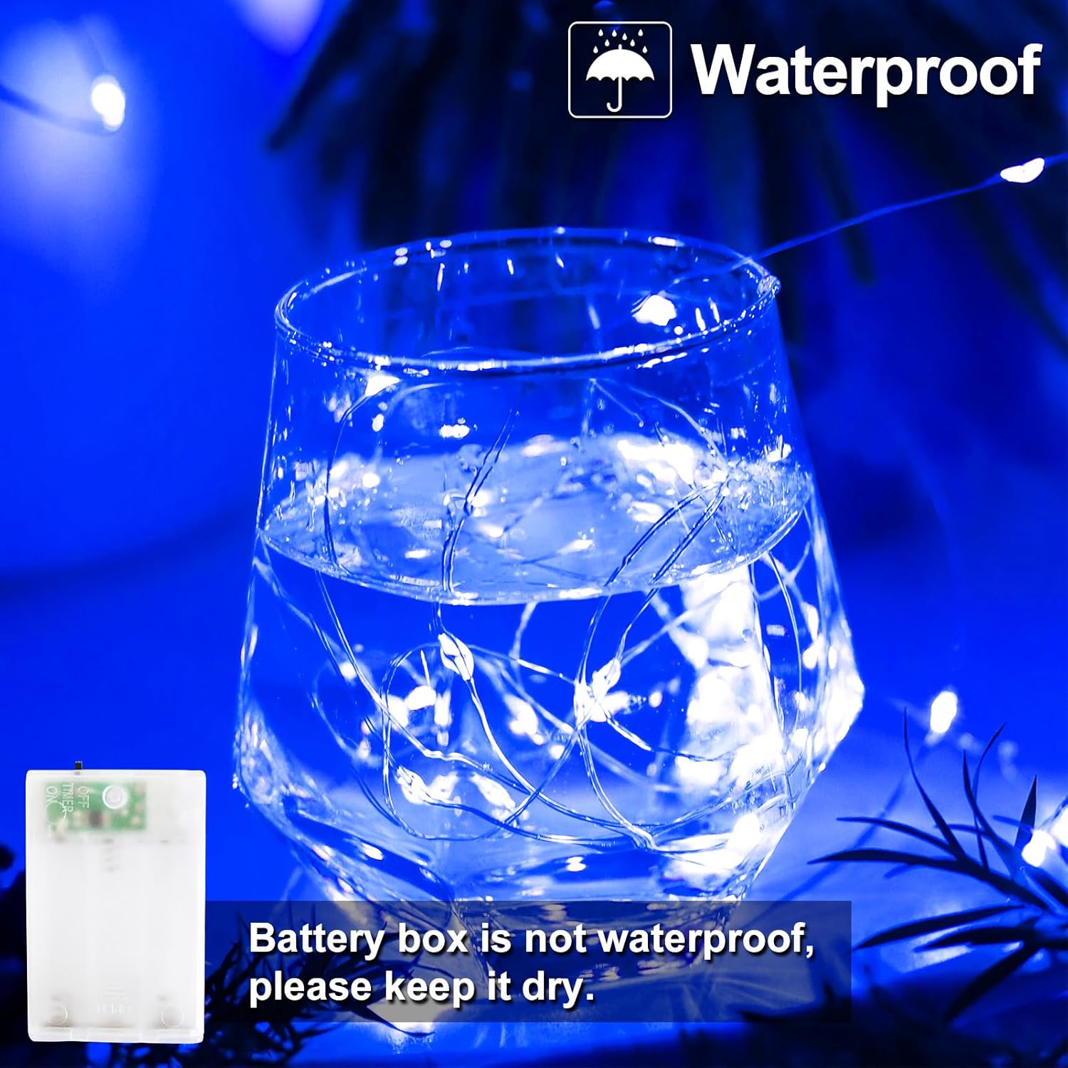 Christmas Decorations Blue Fairy String Lights, Battery Operated with Timer, 2 Pack Total 33FT 100 Led Mini Battery Powered Twinkle Mason Jar Waterproof Firefly Lights DIY Party