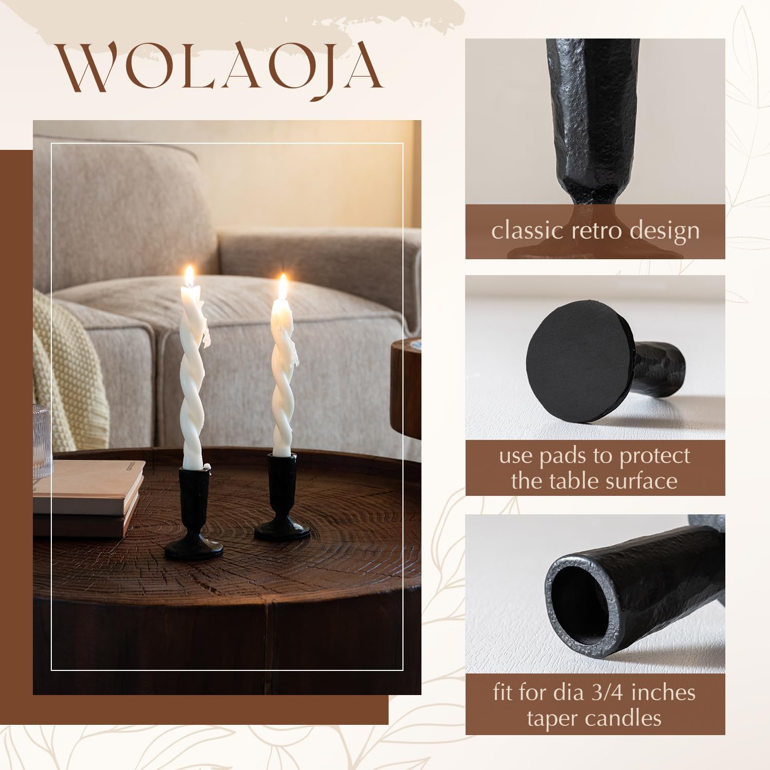 - Durable and Secure:Engineered for long - term use, our iron candle holders are robust and stable. Their weight provides a secure base for taper candles, preventing any accidental tipping. Whether placed on a mantel, dining table, or sideboard, they offer both reliability and charm.