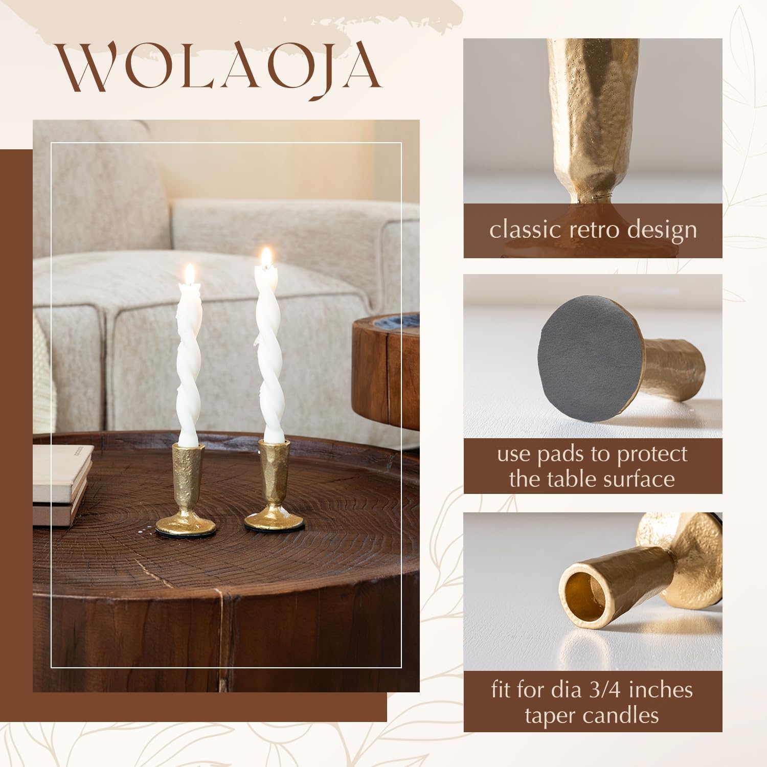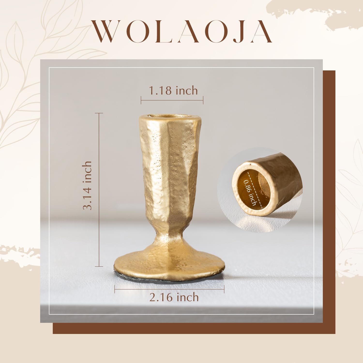 - Standard Sizing, Endless Decor Options:This set features candle holders of uniform dimensions: 2.16” in base diameter and 3.14” in height. They are perfectly sized to accommodate 7/8 inch (2.2cm) taper candles. Mix and match them to match any decor style, from classic to contemporary.
