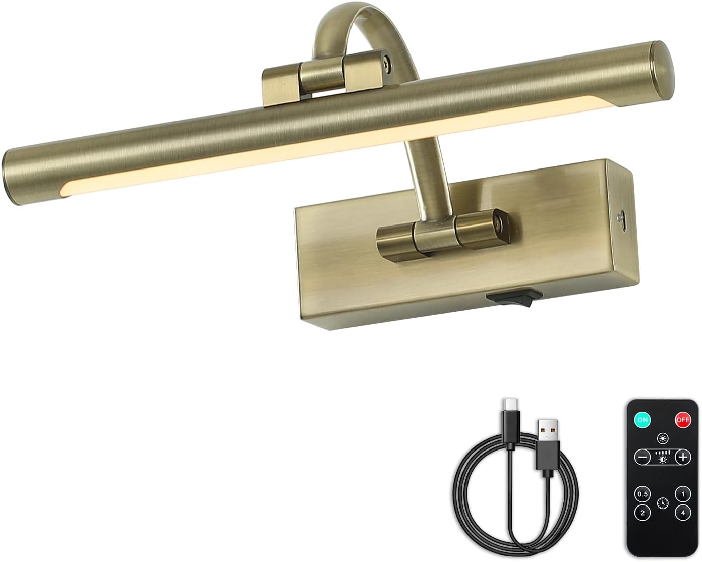 Wireless Picture Lights Rechargeable Gallery Lighting Battery Picture Frame Light with Remote and Timer, Adjustable Art Light for Paintings, Portraits, Antique Bronze Finish 12'' Inch 2W 2700K