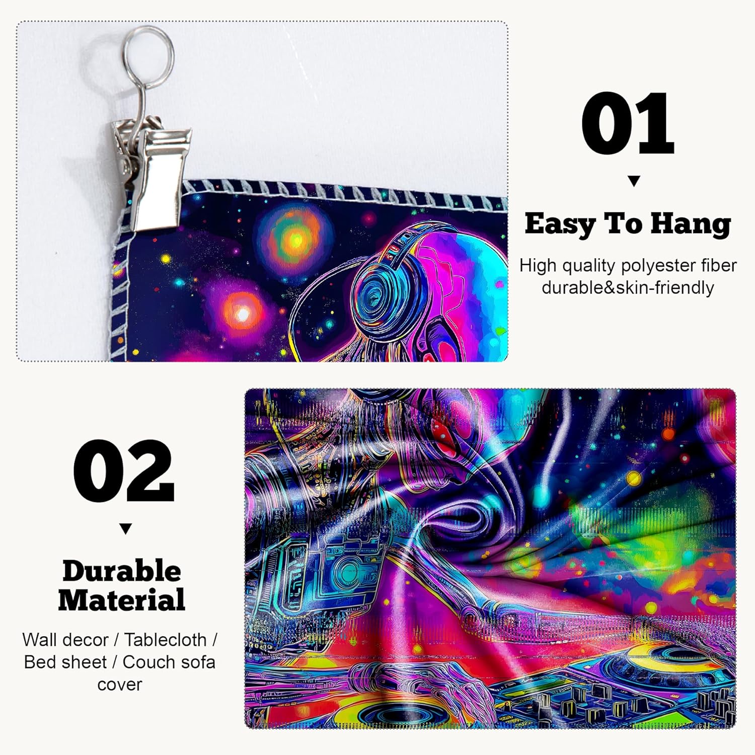 - Versatile Tapestry - With its durable materials and unique design, this blacklight tapestry can serve as a wall hanging tapestry, indie room tapestry, curtain tapestry, dorm room tapestry, ceiling tapestry, bedroom tapestry, glow-in-the-dark artwork or even a picnic blanket.