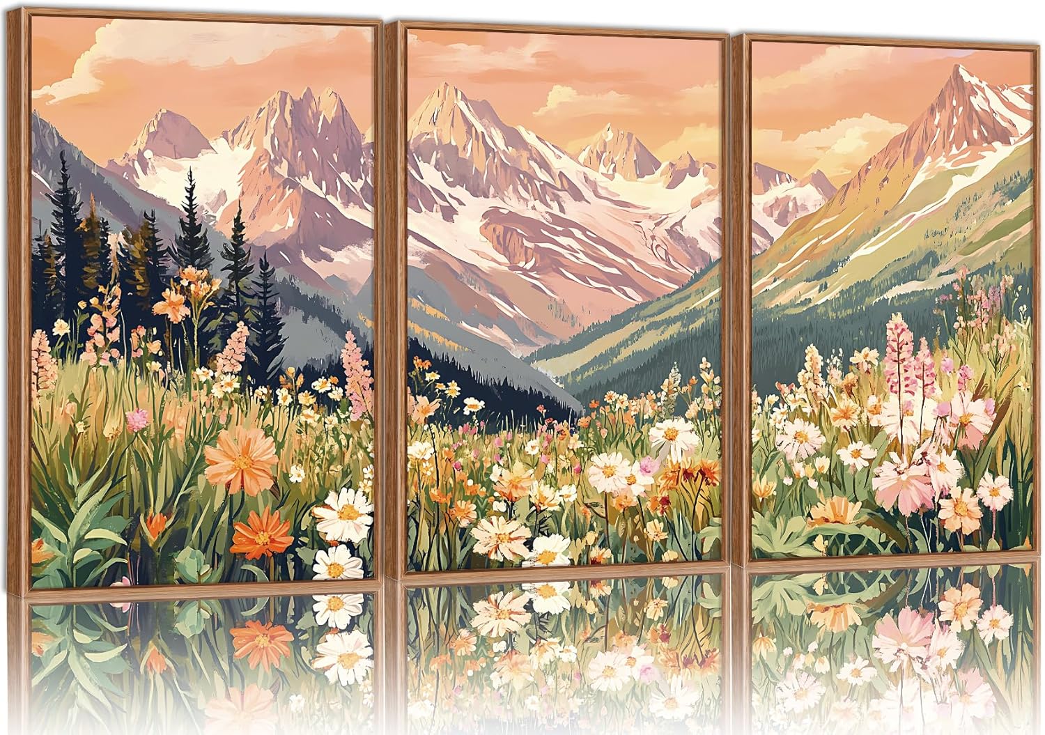 - Stunning Nature Artwork: Elevate your decor with this captivating set of 3 vintage floral framed canvases, showcasing vibrant wildflower landscapes and majestic mountain scenery for a refreshing touch in any room