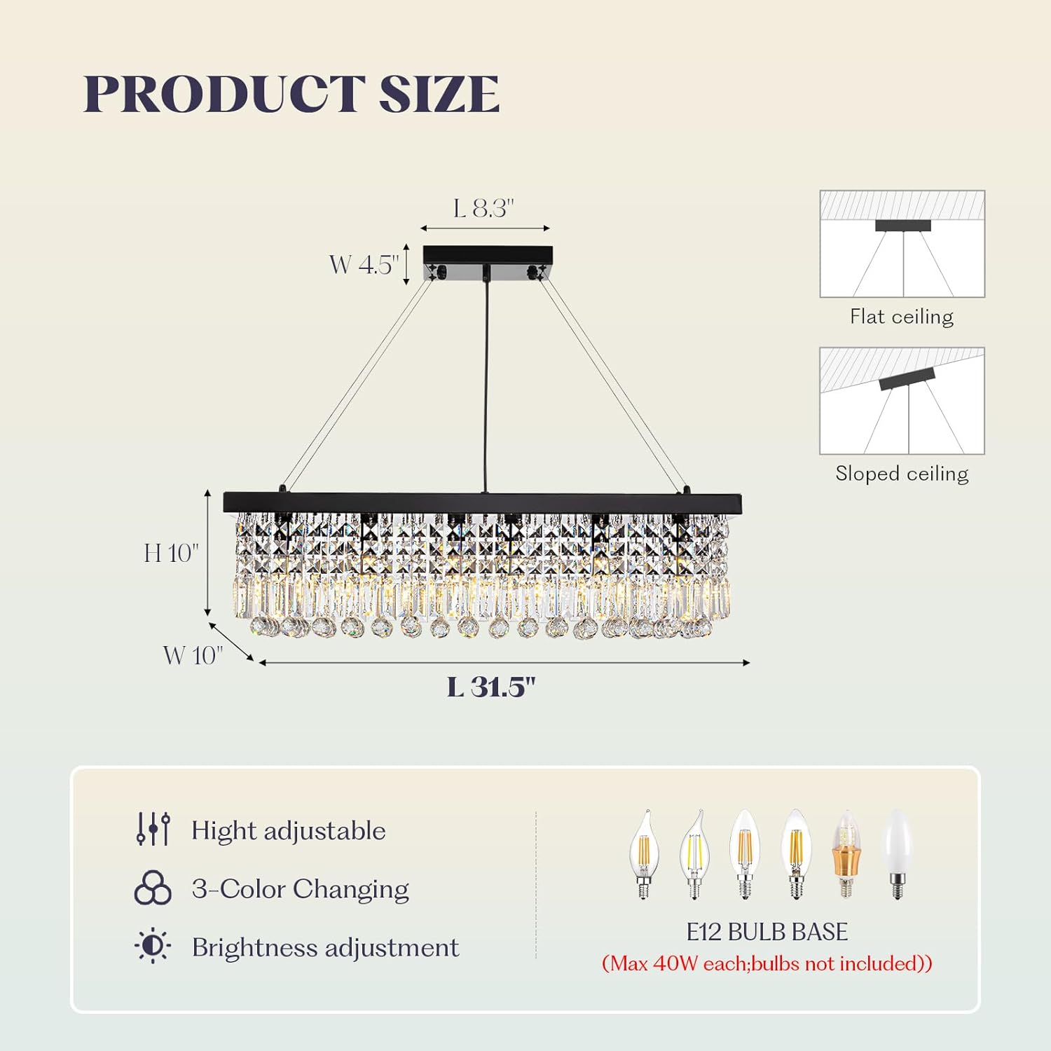- IDEAL SIZE & ADJUSTABLE HEIGHT: This rectangular chandelier measures L31.5" x W10" x H10", a perfect size to illuminate dining tables or kitchen islands without overwhelming the space. The hanging wires are adjustable up to 59", allowing you to set the perfect height on flat or sloped ceilings for a tailored fit in dining rooms, kitchens, living rooms, and more.