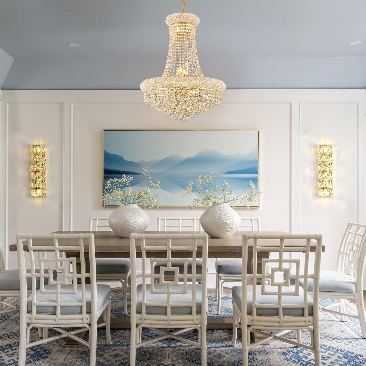 - 【Elegant design】This wall sconce features a tube-shaped lampshade with 6-layer elegant crystal blocks and is dressed in gold finish, showing an elegant modern style and adding a touch of brilliant view to your interior home.